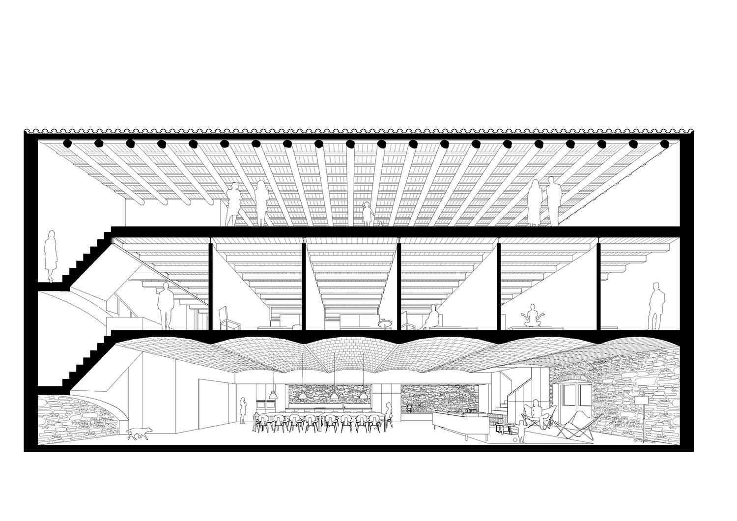 Ve snaze zachovat původní kouzlo domu i po změně jeho funkce tak architekti přistoupili k projektu s náležitým citem. Původní konstrukce zůstaly zachovány a očištěny. Doplnilo je pouze několik současných prvků, jako například nové schodiště, které přispěly k lepšímu propojení a plynulosti prostor. Největší změnu objekt prodělal zejména v uzpůsobení interiéru reagujícím na vyvážení společenských a soukromých prostorů. Transformací prošly z hlediska využití také plochy v exteriéru, které reagují na teplé středomořské klima a dnes tak slouží jako venkovní kuchyň s jídelnou, krytá terasa a nechybí ani vodní plocha v podobě bazénku v centru pozemku.