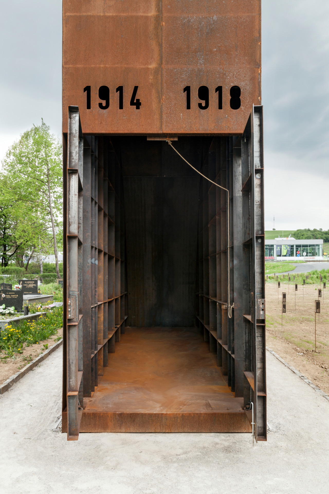 Obnovu zaniklého vojenského hřbitova na Slovensku zdůrazňuje ocelový monument sloužící jako kaple i vyhlídka