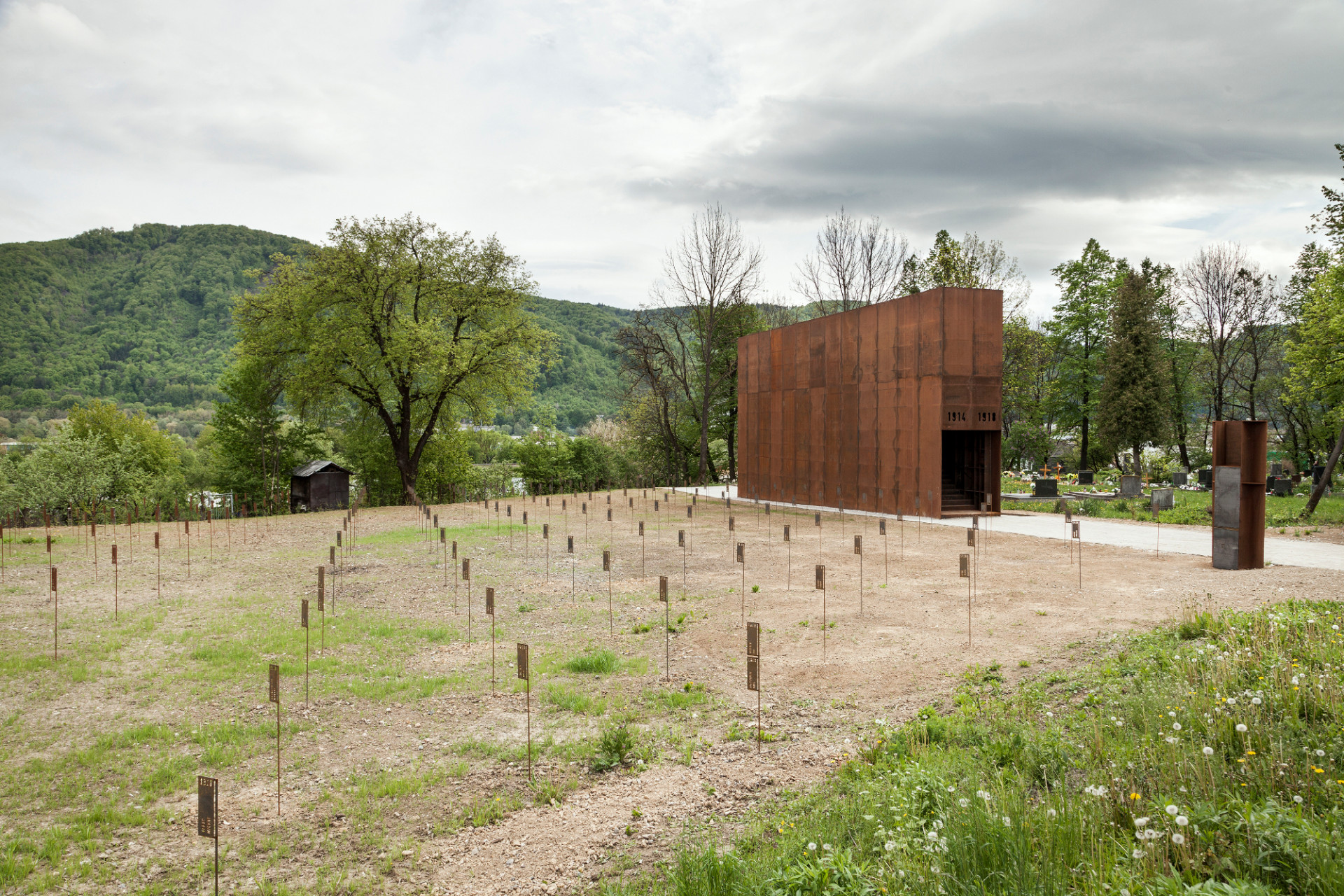 V době první světové války vznikl u Banské Bystrice na Slovensku rozlehlý vojenský hřbitov, který ovšem o 50 let později začal postupně chátrat a měnit svou podobu. Na začátku nultých let pak severní část hřbitova dokonce ustoupila novému autosalonu. V souvislosti s výročím 100 let od ukončení války, které jsme si připomínali před 3 lety, se tak město rozhodlo vypsat veřejnou architektonickou soutěž, jejímž cílem byla obnova části vojenského hřbitova, po kterém již nebylo téměř památky. Soutěž vyhrálo slovenské studio N/A, které přítomnost zapomenutého hřbitova zdůraznilo velkým kovovým objektem, který připomíná historické události a slouží taky jako kaple i vyhlídka do míst původního hřbitova. Na ploše hřbitova pak vznikla květnatá louka.