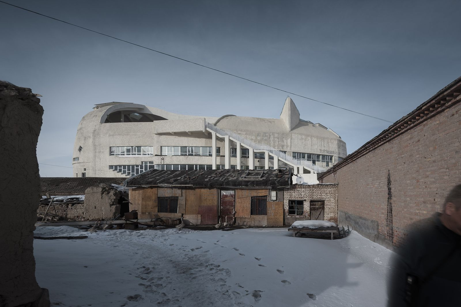 Obří cementová hmota bez jakýchkoli příkras. Muzeum uprostřed čínské pouště
