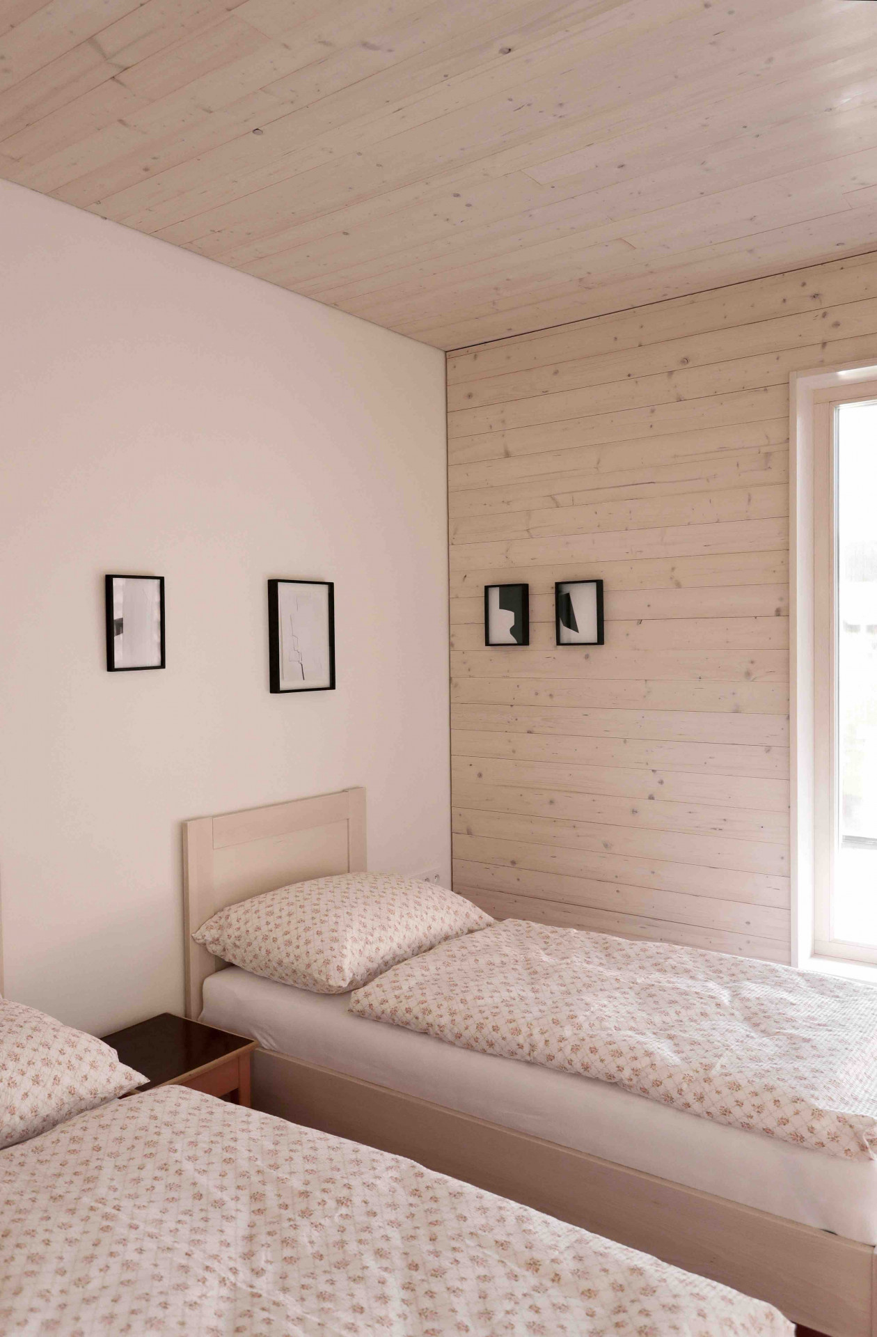 Nové využití ale nepotkalo pouze starou stodolu, původní spojovací křídlo, kde se nacházely chlívky, bylo kvůli špatnému stavu téměř celé postaveno znovu. Dnes se ve dvojpodlažním křídle nachází velká kuchyně s jídelnou a několik ložnic s koupelnami. Dominantní roli si opět zachovaly konstrukční prvky, vedle pozůstatků původních silných kamenných zdí architektka pracovala i s novými keramickými tvarovkami Porotherm a pálenou střešní krytinou Tondach od společnosti Wienerberger.