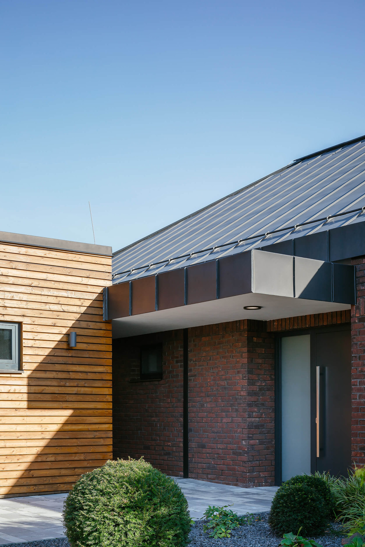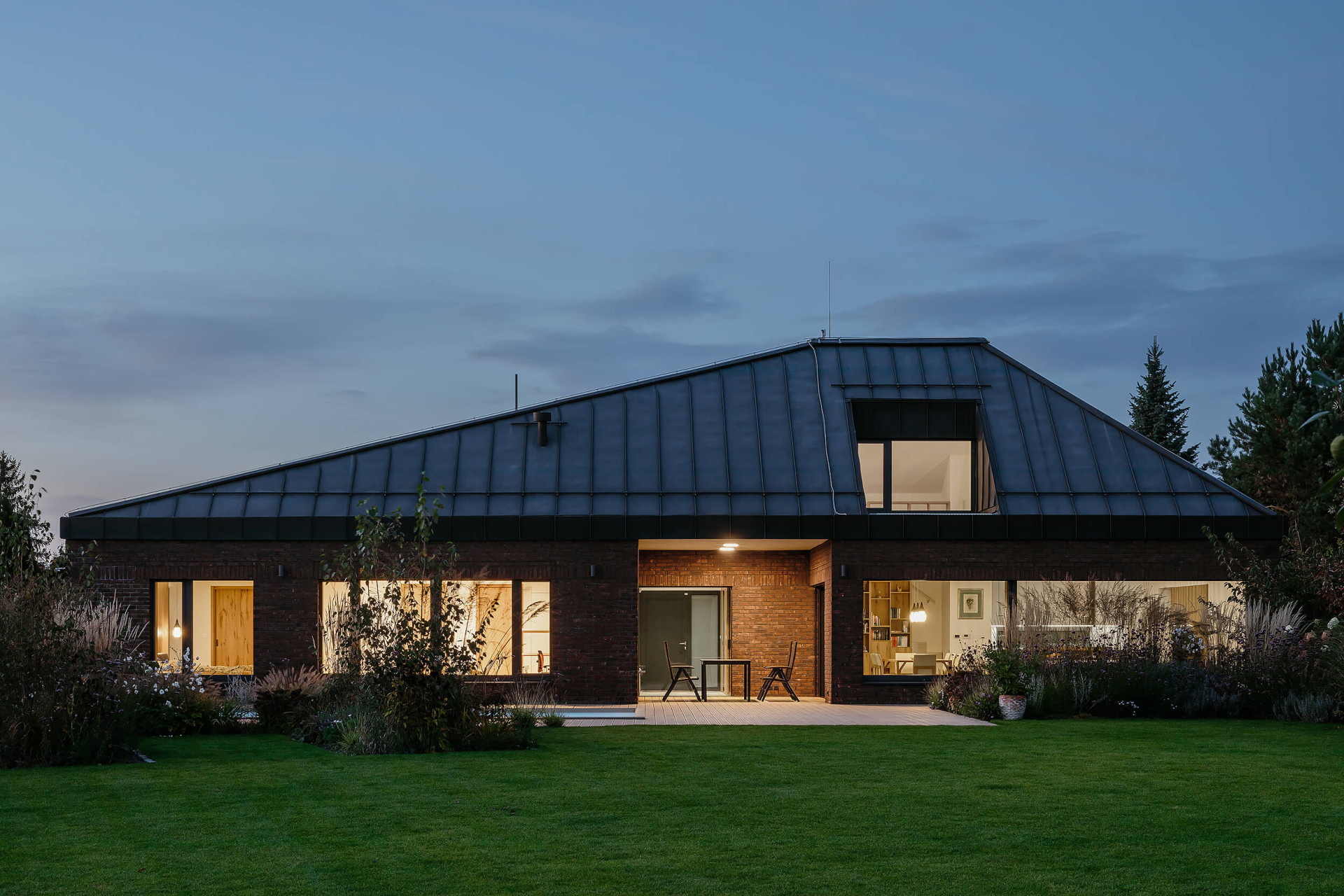 Architekti stavěli pro tutéž rodinu už druhý dům. Oba mají přizdívku z cihel - dům je postavený z keramických tvárnic, následuje vrstva izolace a vzduchová mezera. Až na povrchu souvrství je „obal“ z cihel. Dům chrání, zmírňuje výkyvy teplot a také dodává bytelnost a pocit pevného domova.