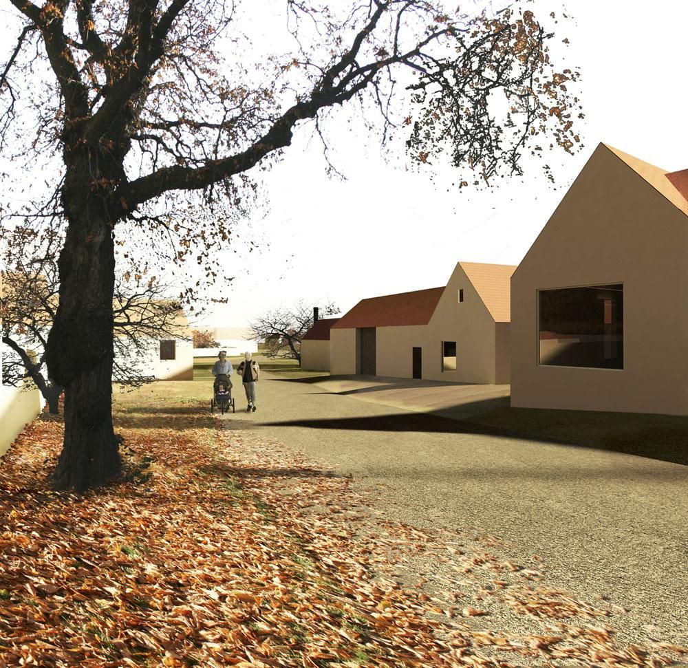 Jemný, ale sebevědomý projekt, navíc zabývající se vesnicí, tedy žádné mrakodrapy, ale prostředí, které známe. Z vizualizace čiší letní odpoledne, kluci běží k rybníku a někde štěká pes. Nádherné plány. Čechy – naše země. Pocit klidu. Přitom vidno, že to je od architekta, i trocha té divnosti pro toho, kdo se pozorně kouká…