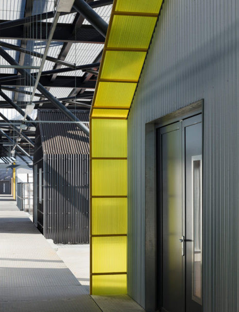 Šedá ocelová konstrukce získala díky barevným objektům zcela nový, překvapivý ráz. Každé ze studií má ztělesňovat lokální produkci a kreativní myšlení komunity. Jedna z buněk například odkazuje vzorem rybích šupin na místní výrobu vyhlášeného uzeného lososa. Studia obložená dřevem zase poskytují klidné a flexibilně přizpůsobitelné prostředí pro tvůrčí práci.