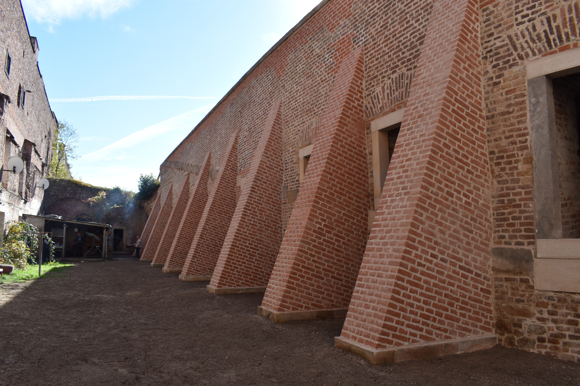 Obnova se týkala zejména masivního obvodového zdiva bastionů, u kterého proběhla oprava lícových ploch, přezdění nebo dozdění jejich korunních částí a doplnění pískovcových říms. Doplněna byla i tradiční jílová izolace zdiva. Pro dozdění byly použity z části původní cihly, z části cihly nové, vyrobené v Lotyšsku speciální technologií tak, aby se svými vlastnostmi i vzhledem co nejvíce podobaly původním barokním pevnostním cihlám, tzv. šancovkám.