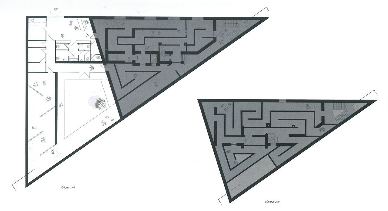 Původní dům je rozšířen a upraven na dispozici labyrintu. Bezbariérovost provozu zajišťují dveře na čip, které pomohou přeskočit druhé patro a pokračovat v prohlídce. Suterén slouží jako technické zázemí.