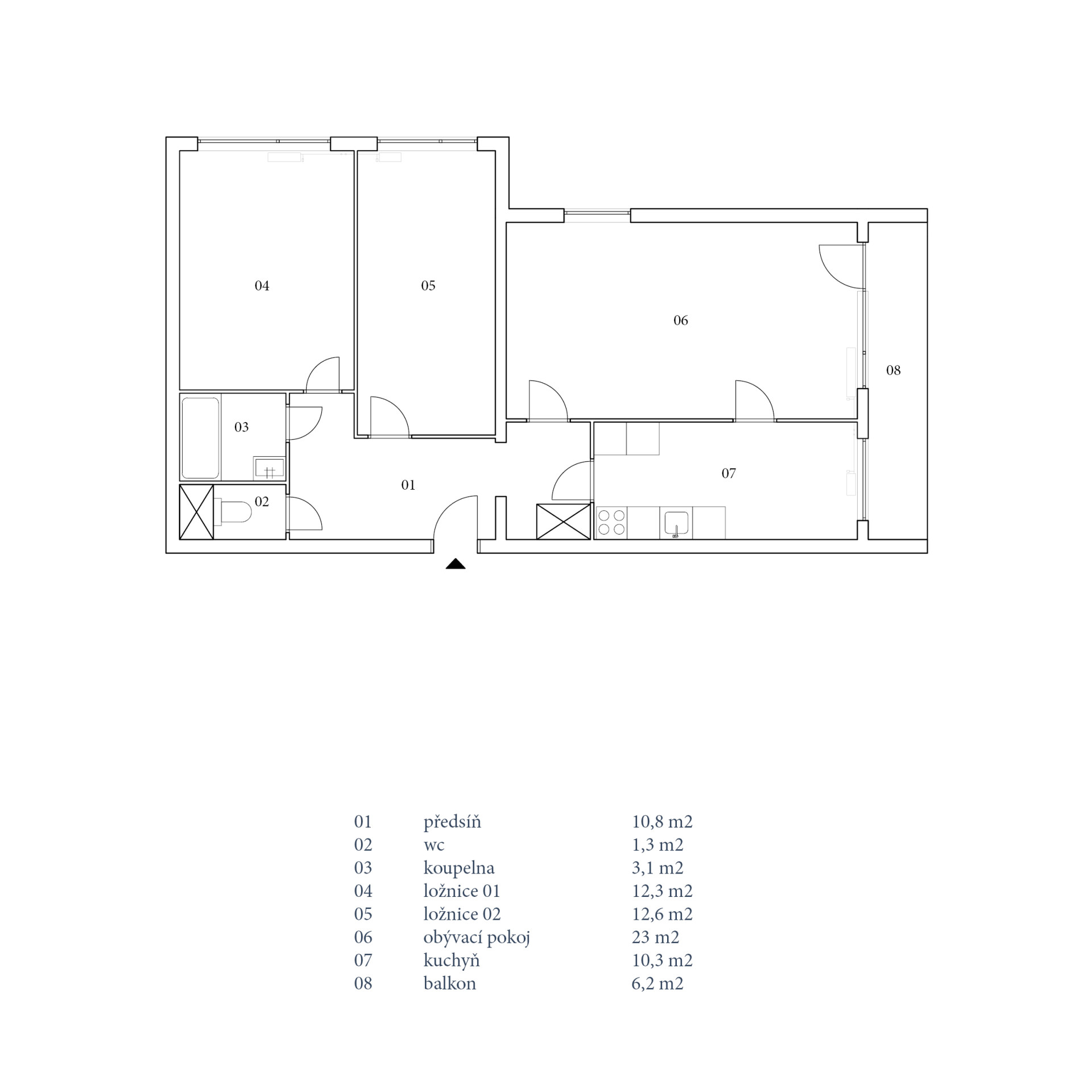 Paní H naši práci viděla v televizi. Ozvala se nám den poté, co v ní odvysílali reportáž o našem projektu Byt architekta. Má dva syny, dvojčata a vychovává je sama. Řekla nám, že má také byt v panelovém domě a že by od nás chtěla, abychom pro ni a její děti vymysleli absolutně “čistý” a moderní byt. Říkala, že v Praze má i jiný byt, ve kterém lze komfortně bydlet a můžeme tak být v naší práci svobodnější.