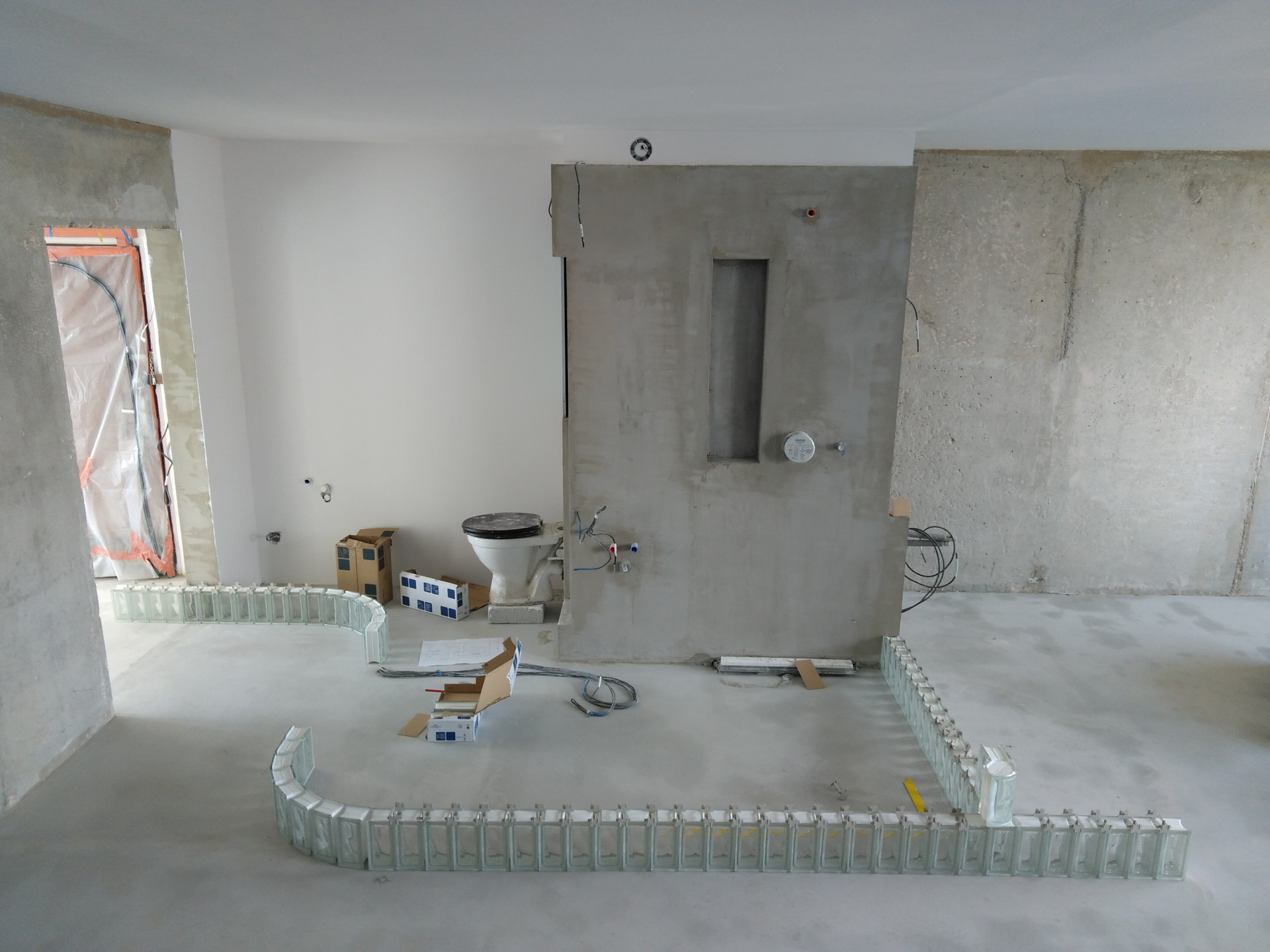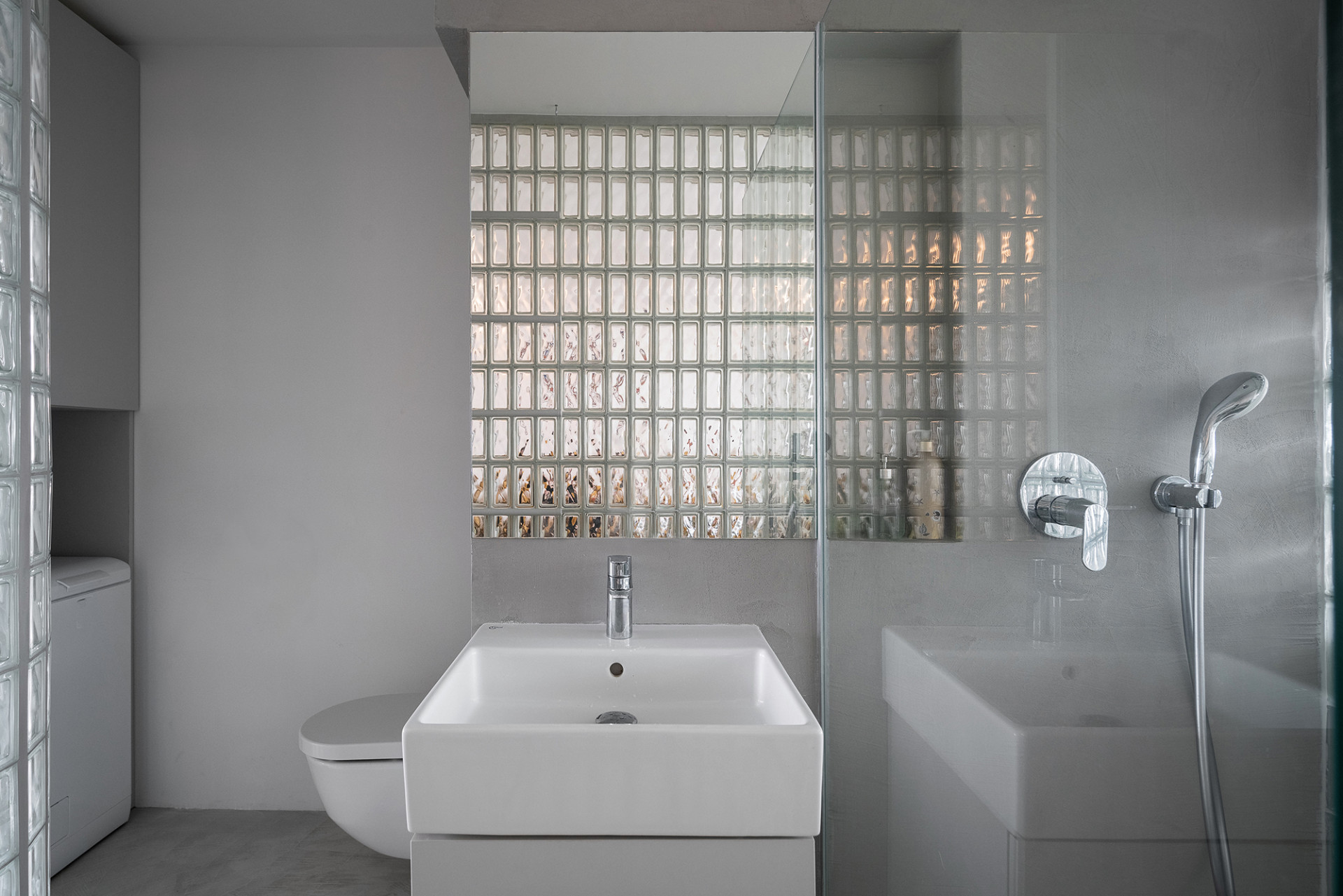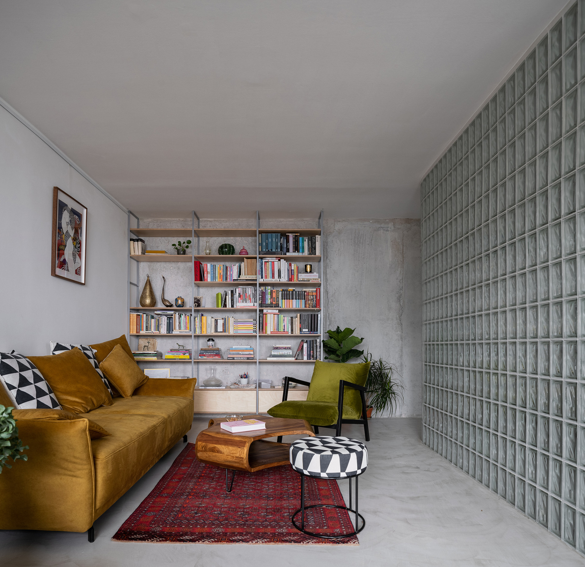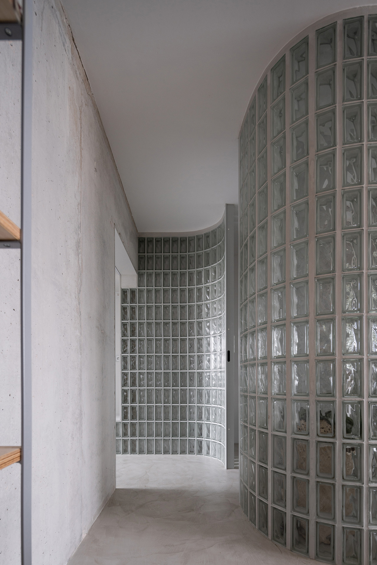 Nejdůležitějším bodem rekonstrukce bylo prosvětlení celé dispozice bytu. Proto architekti přišli s nápadem prosklených příček z luxfer, které mají dobré akustické vlastnosti, propouští světlo a lze je vyskládat i do oblouku. Luxfery se tak nakonec staly ústředním prvkem celého interiéru.