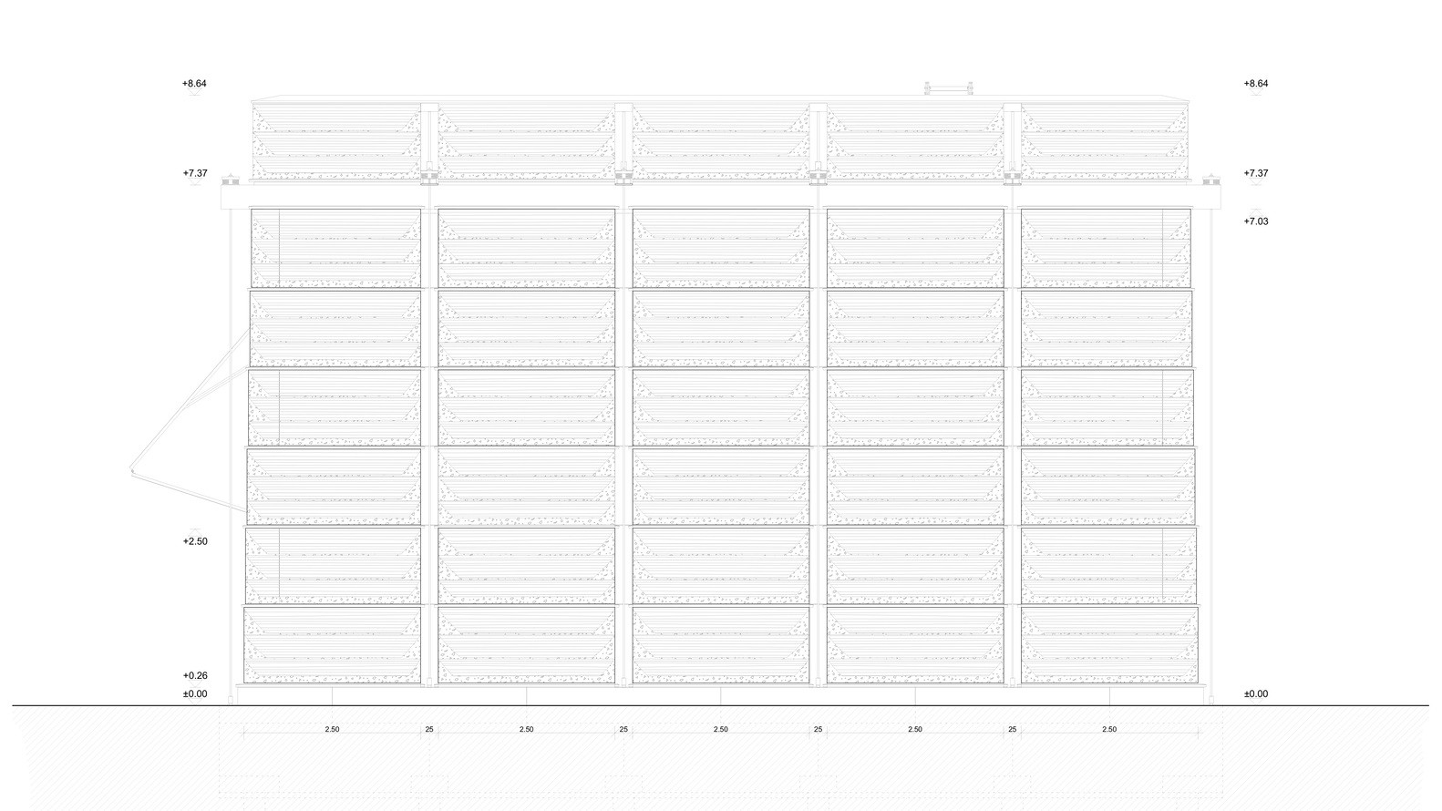 Aby věž získala potřebnou stabilitu, za použití relativně tenkých stavebních bloků, využili tu, u hliněné stavby vůbec poprvé, předpínanou konstrukci; stabilitu stavby pomáhají udržet napnutá ocelová lana. „Tímto způsobem za pomoci předpínání by bylo možné stavět z hlíny i mnohem větší stavby než doposud,“ říká Roger Bolthauser v podcastu německého časopisu Detail.
