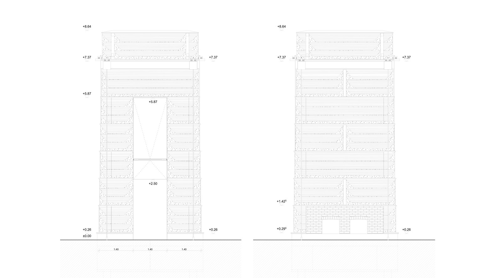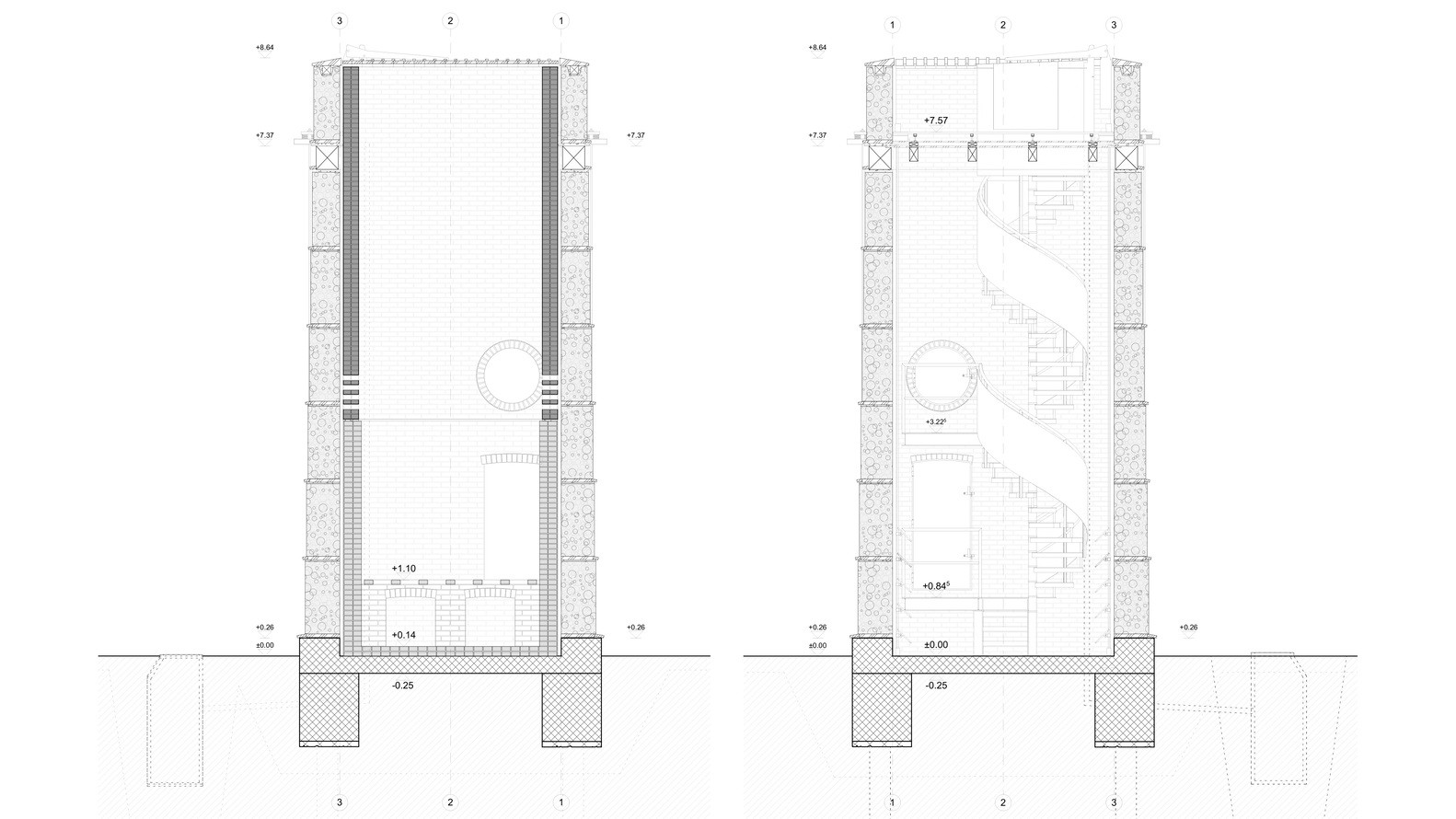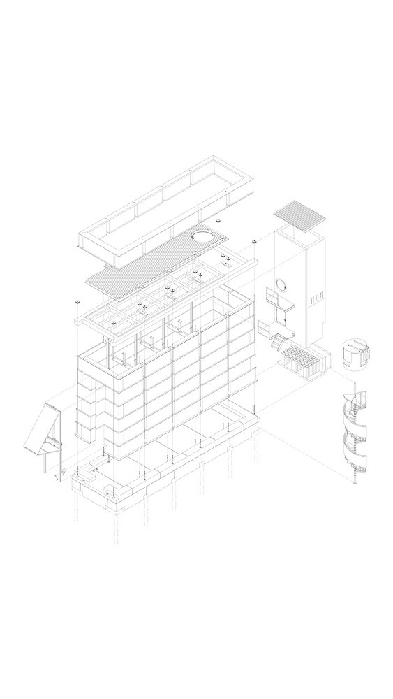 Nejprve bylo ovšem třeba namíchat materiál – hlínu plus stavební suť. Materiál se pak dusal do forem. Z nich vyšly bloky, které se transportovaly na místo stavby. Každý měl zespoda platformu, která umožnila ho přesouvat, a posléze se stala součástí konstrukce věže – to je jen jedna z mnoha inovací, kterou tu architekti a stavitelé v jednom uplatnili. Jednotlivé kroky je možné vidět ve videu, které během stavby vzniklo.