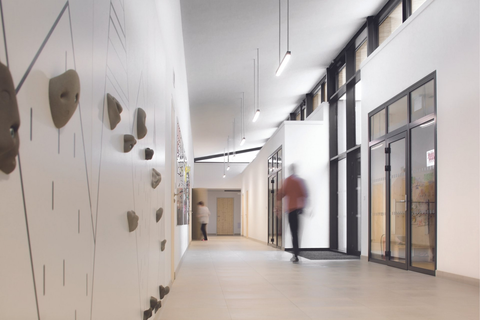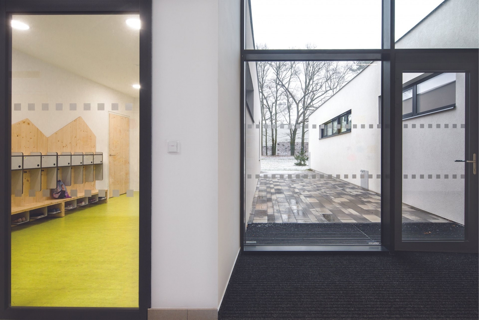 Školky už dávno nejsou jedna jako druhá, alespoň ty nové ne. Mají různorodé architektonické charaktery i prostorové koncepce. Mateřská škola Doubek v Pardubicích je například rozdělená do několika pavilonů. Ty fungují jako samostatné herny – kompletní buňky s vlastními šatnami a koupelnami.