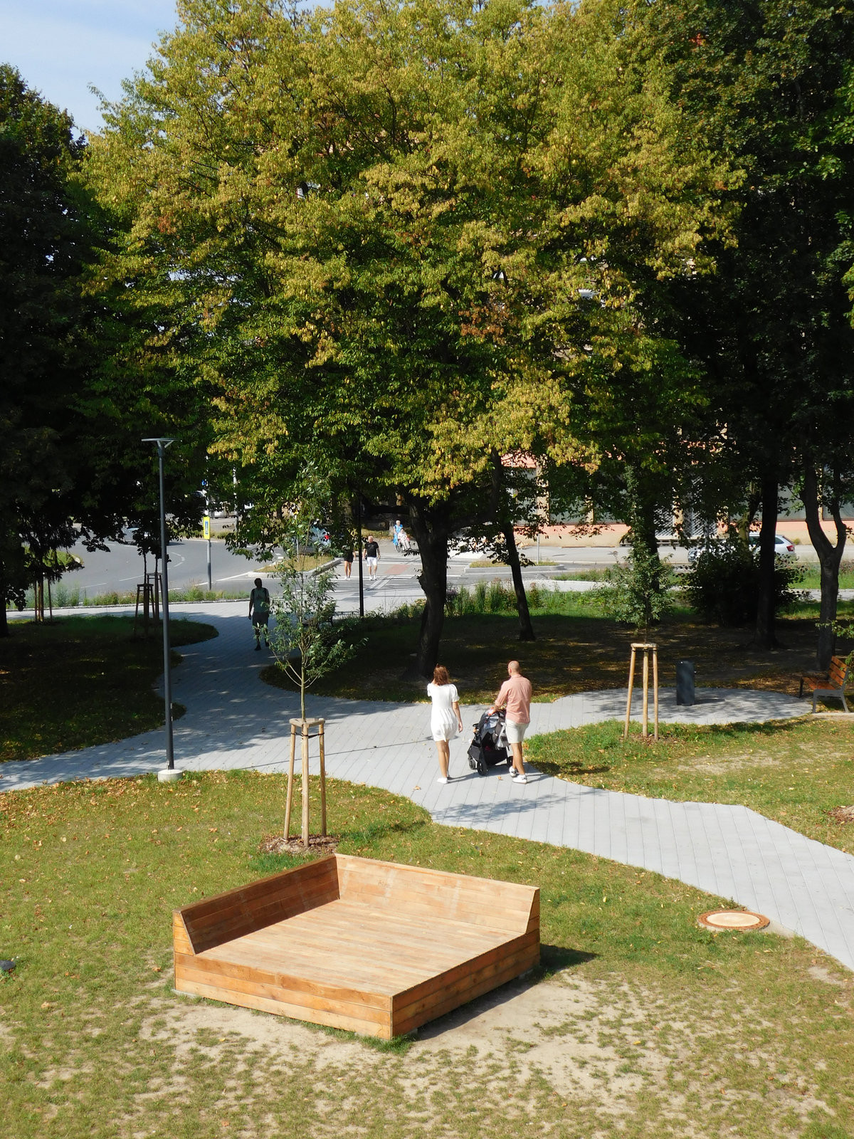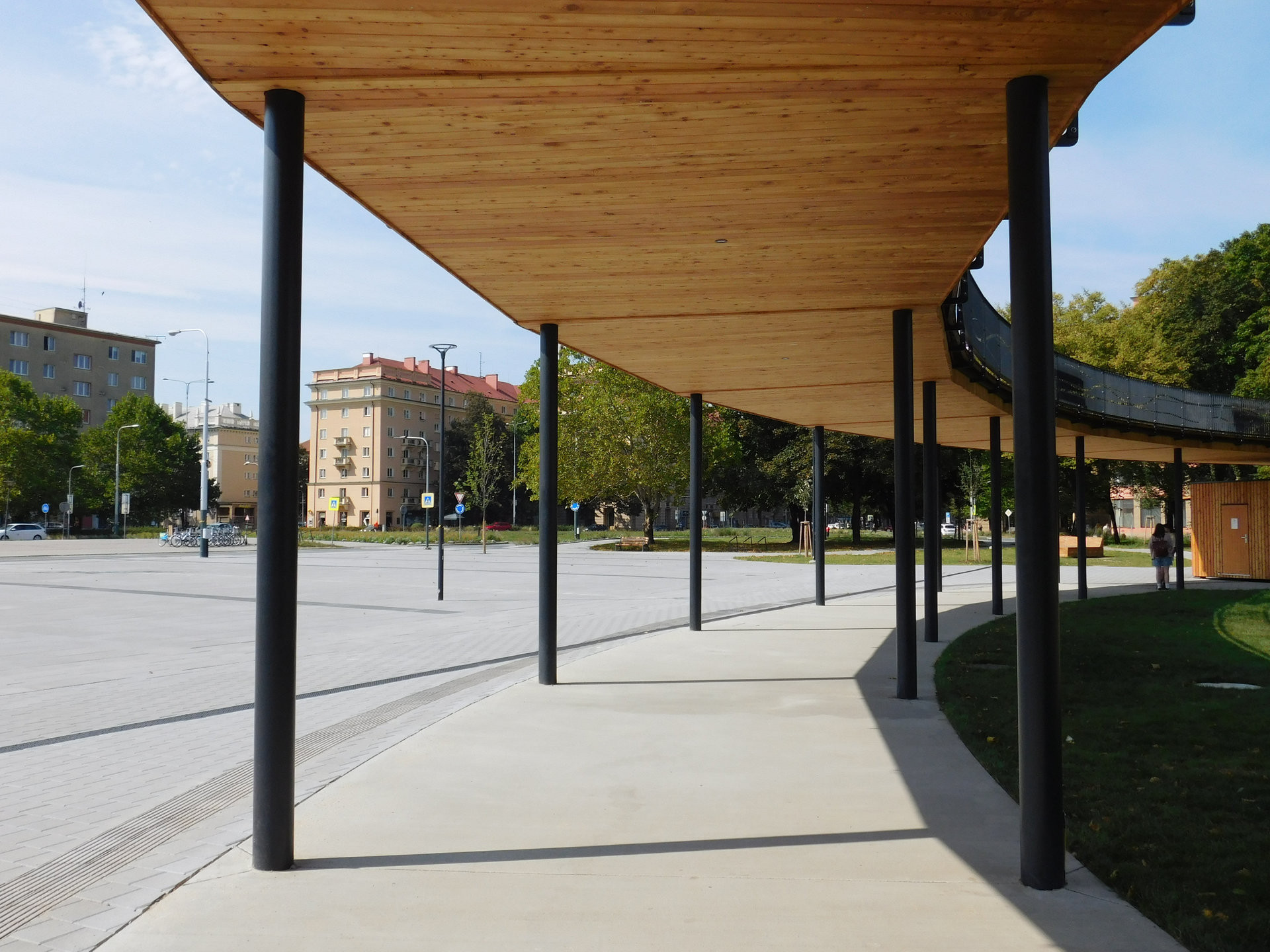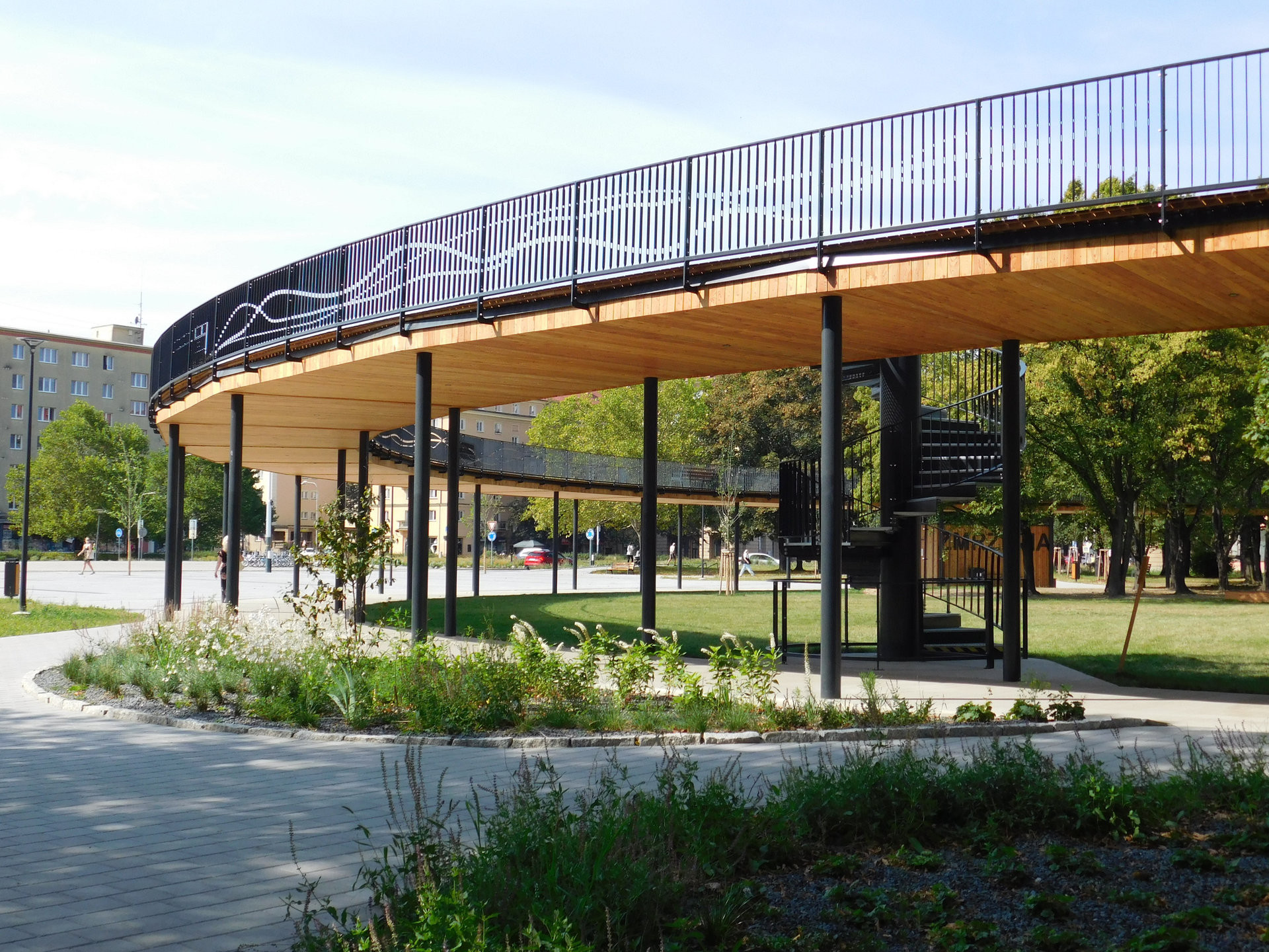 Nové tváře se prostranství dočkalo letos. Změnilo se k nepoznání. Především ho však začali navštěvovat lidé, a to v hojném množství. Novou dominantou se stala dřevěná prstencová terasa vyzdvižená nad hlavy kolemjdoucích. Někteří se po ní procházejí se zmrzlinou v ruce, běhají, nebo sedí na lavičce a pozorují z výšky nový park. Výstup na vyhlídku je řešen ve formě širokého schodiště, dá se na ni dostat také výtahem nebo drobnějším točitým schodištěm.
