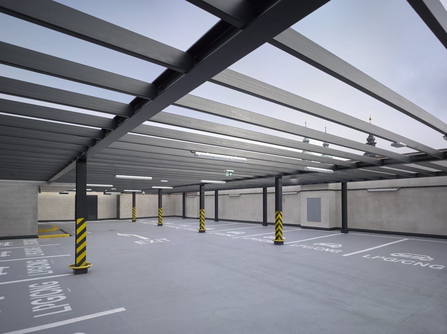 Parkovací dům se nachází v centru města, v návaznosti na historický areál Zemského sněmu – dnes sídlo Magistrátu města. Sousední objekty jsou památkově chráněné budovy a konstrukce (hradební zeď) z různých historických období. Objekt má kapacitu 360 vozidel ve dvou vícepodlažních blocích posunutých vůči sobě výškově o polovinu a jsou spojeny v jednosměrném provozu polorampami. Parkovací dům z rukou Architekti Hrůša a spol. a Atelier Brno je letos nominován na Českou cenu za architekturu.