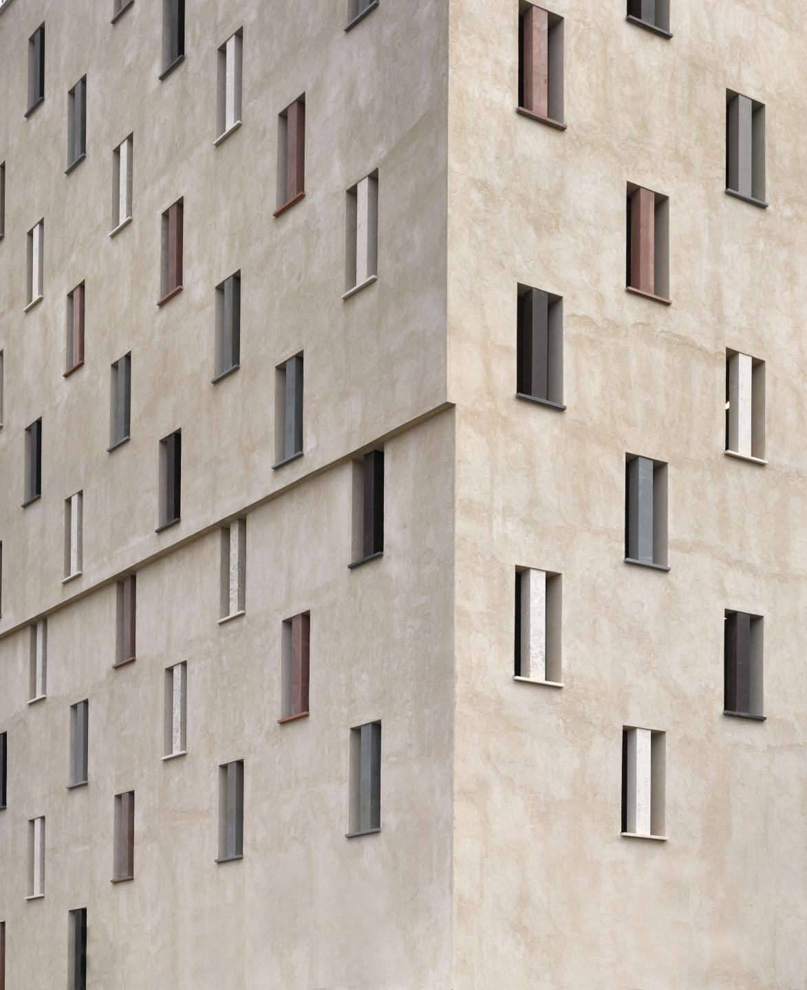 Fasáda je omítnuta dvouvrstvou vápennou probarvenou omítkou bez nátěru a uplatňují se zde prvky z přírodního kamene – okenní sloupky, parapety, krytí atik, říms a sokly.