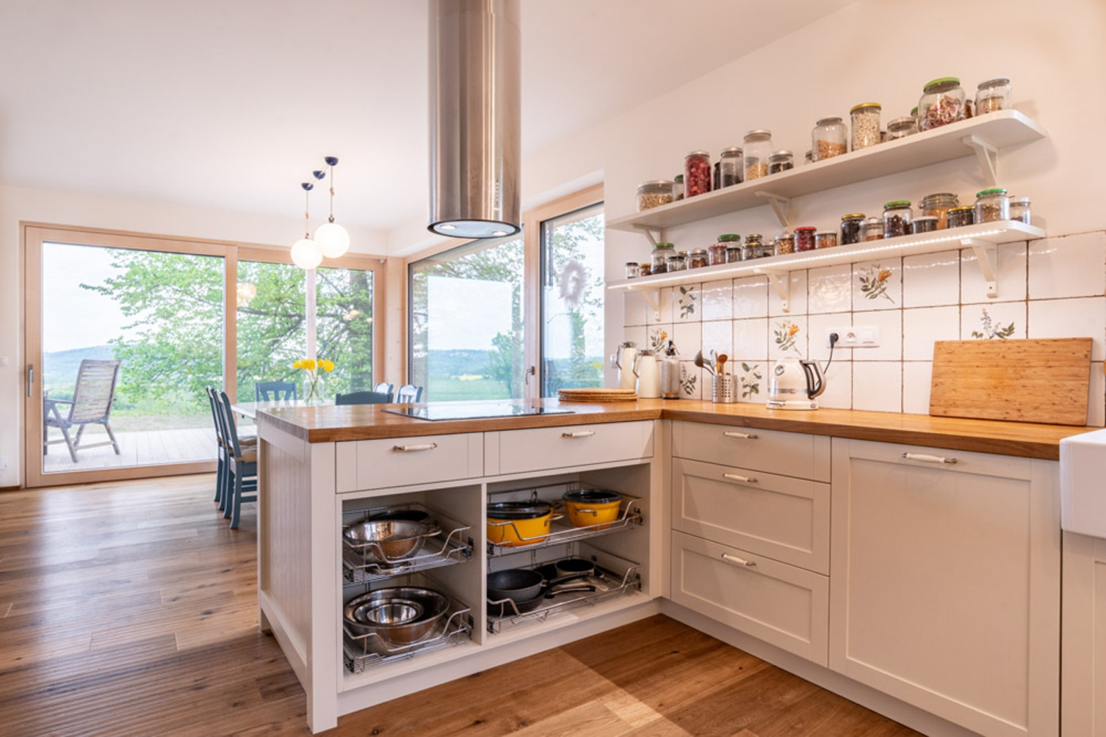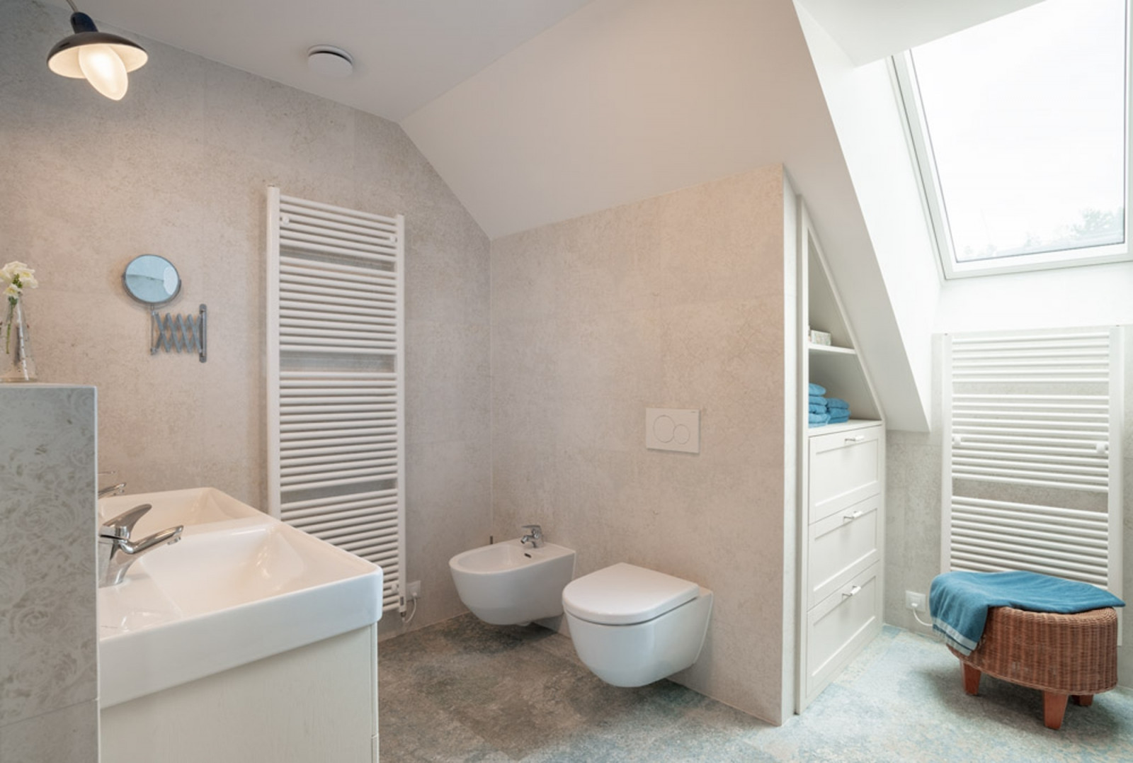 Vedle pasivního standardu je výhodou dřevostavby také její inteligentní řízení. „Dům je vybaven inteligentním systémem, který umožňuje ovládání díky mobilní aplikaci. Ovládá vše od stahování žaluzií, přes vytápění, svícení až po doplňování vody v zahradním jezírku. Teplo a větrání je řešeno elektrickými topnými rohožemi,“ vysvětlují architekti z ARCHCON atelieru.