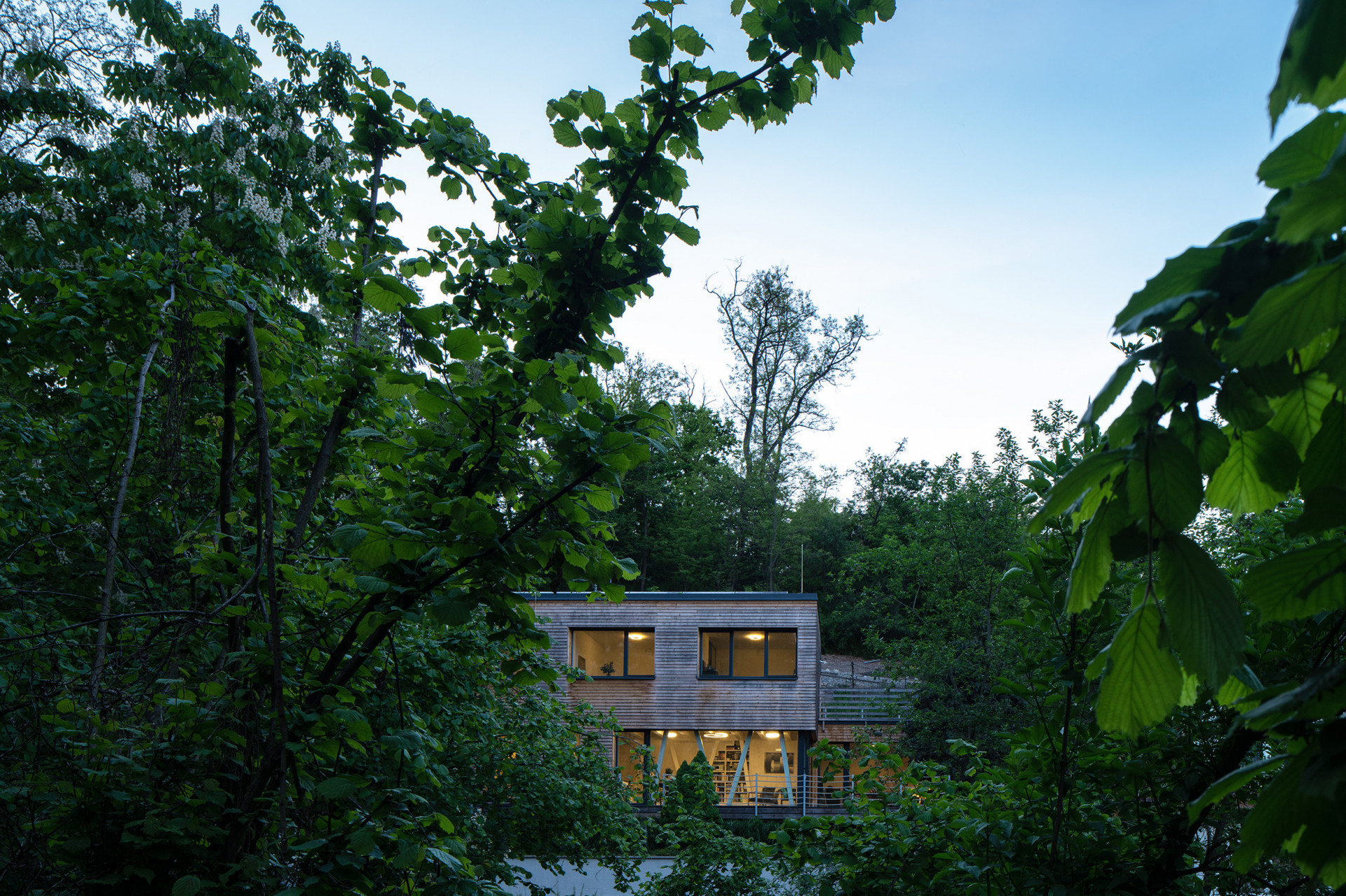 Pasivní dřevostavba v zalesněném svahu Prahy nabízí výhledy na řeku