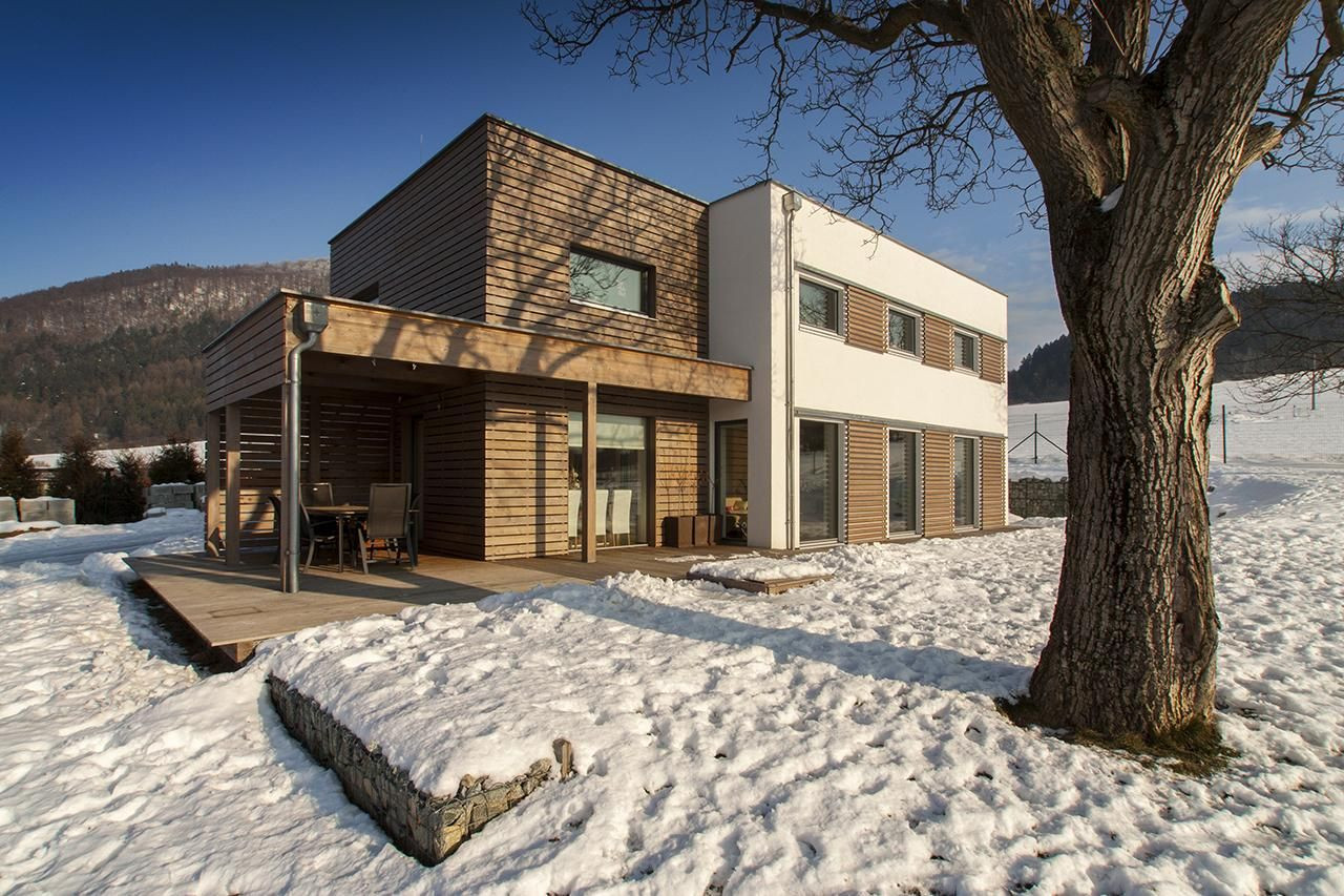 Dom pri Žiline spĺňa všetký kritéria pre energeticky pasívny štandard: Ročná potreba tepla na vykurovanie 11,7 KWh/(m2/a) podľa vypočtu PHPP.