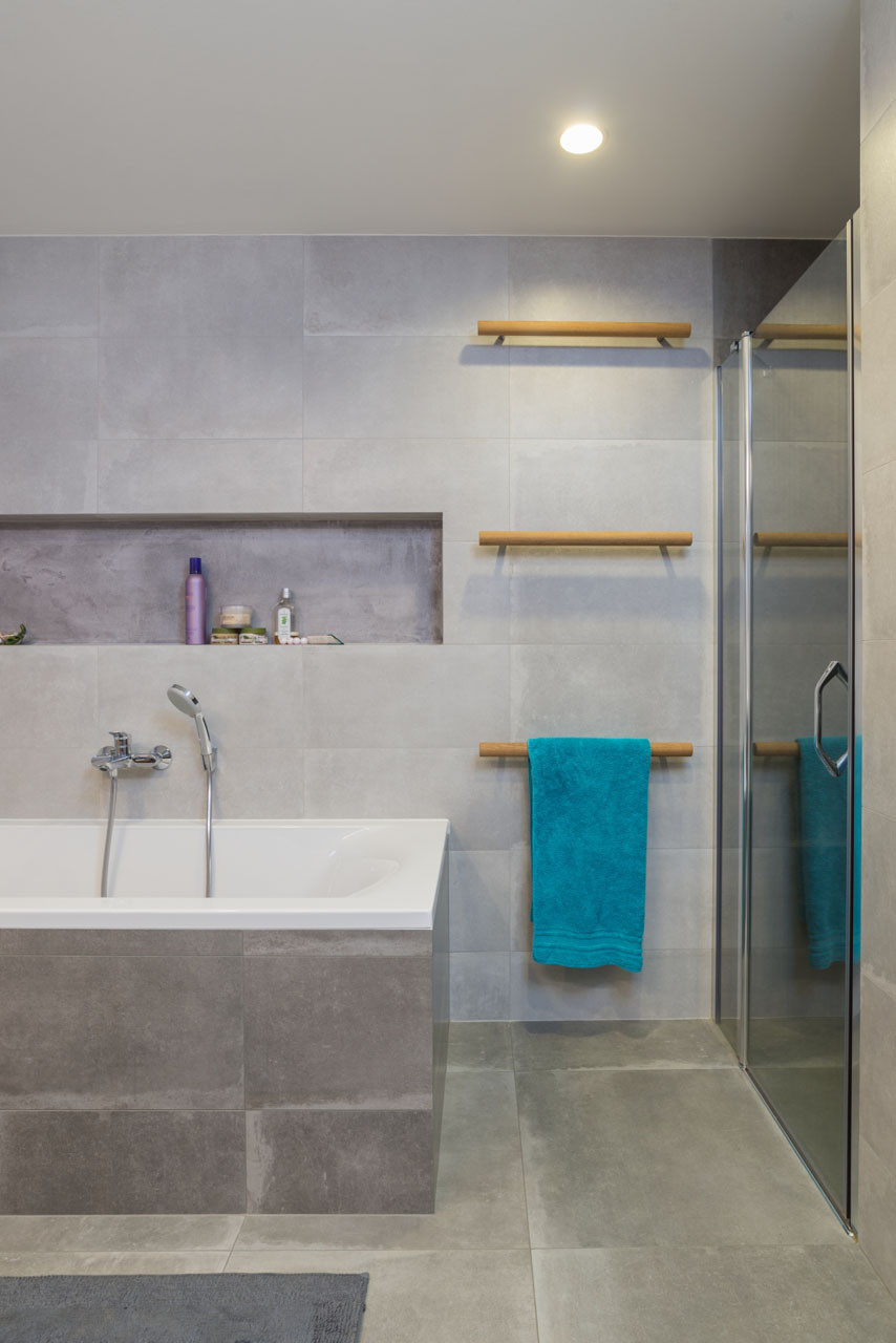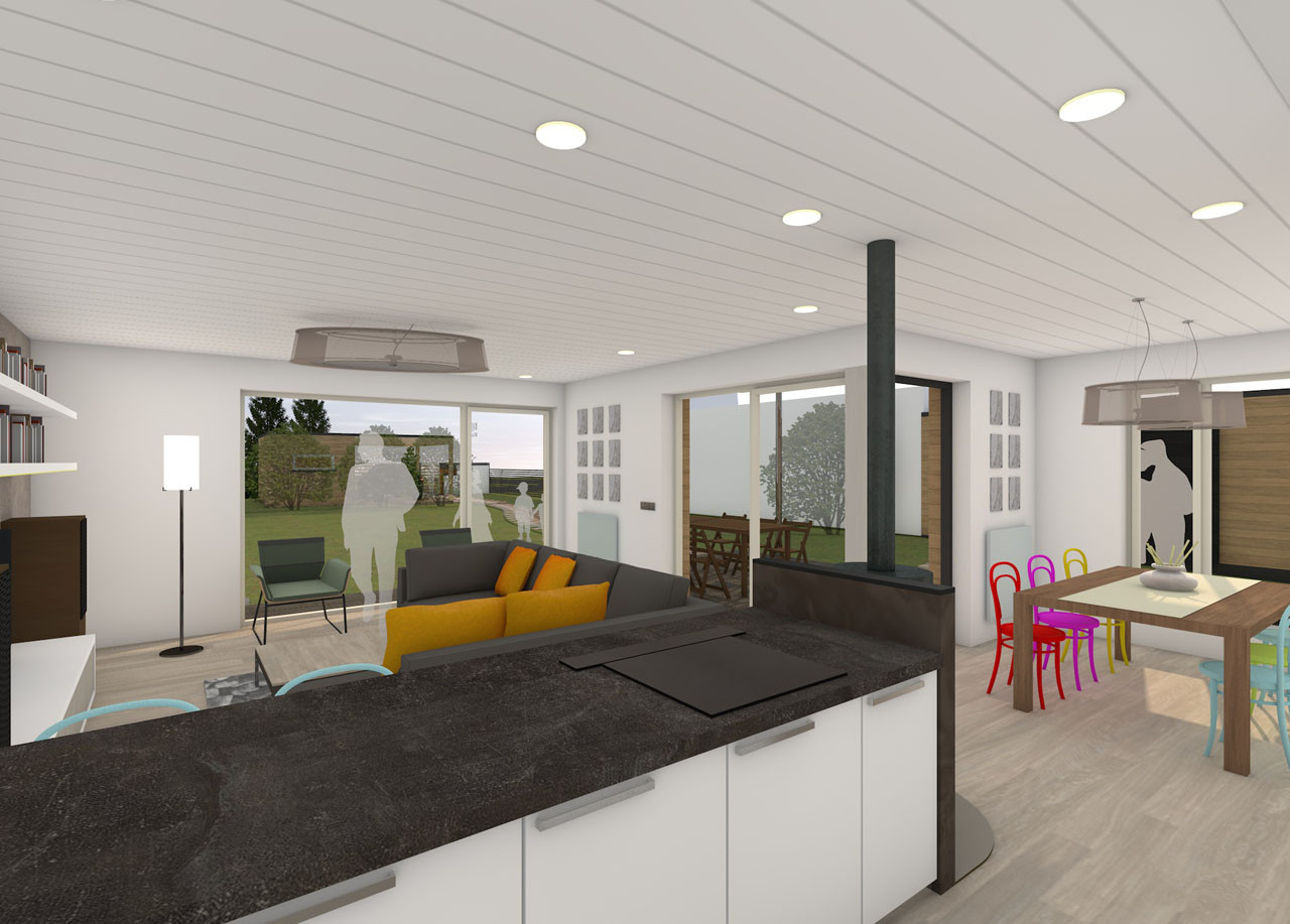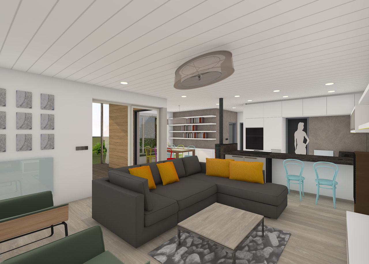 Všechny prvky interiéru musely ustoupit do pozadí vysněnému stolu z masivního cedru a barevným tonetkám. Proto se zde pracovalo převážně s běleným dubem a odstíny bílé, šedé a antracitové. Dokonce i na dřevěný obklad stropu byla zvolena bílá barva, současně si však svou rustikální podstatu uchovává díky přirozeným nerovnostem a nedokonalostem.