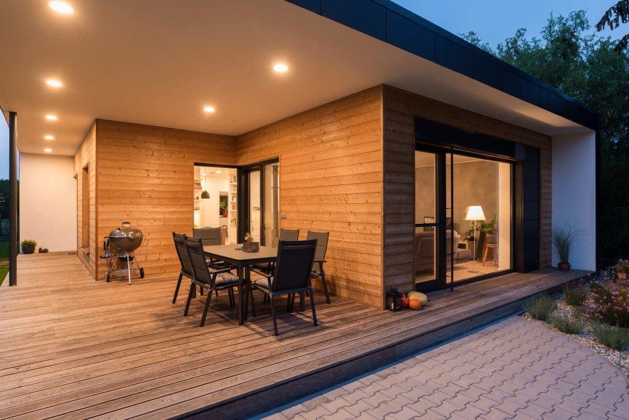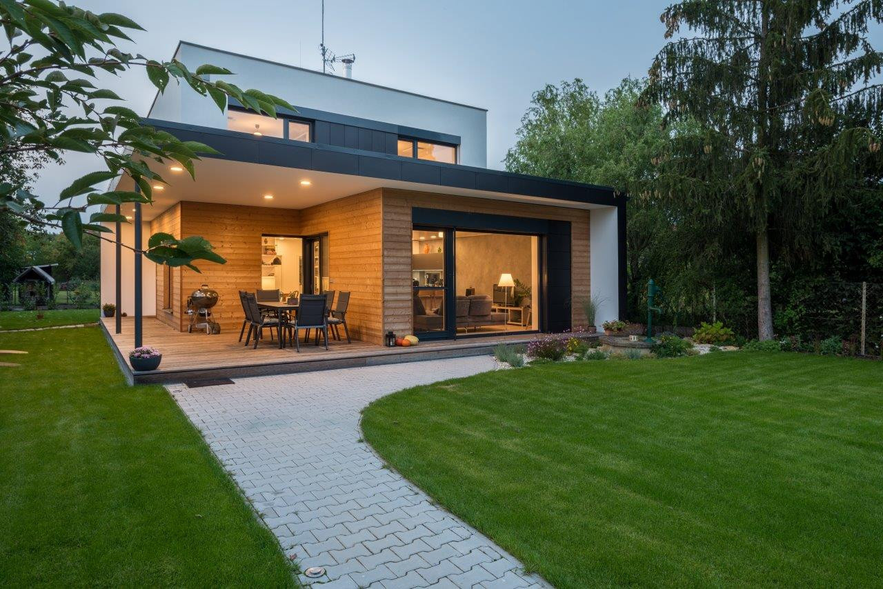 Pasivní rodinný dům od ateliéru ARCHCON nabízí prostornou krytou terasu