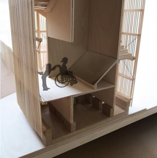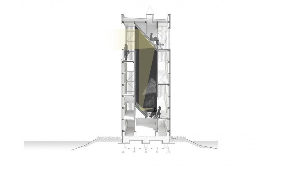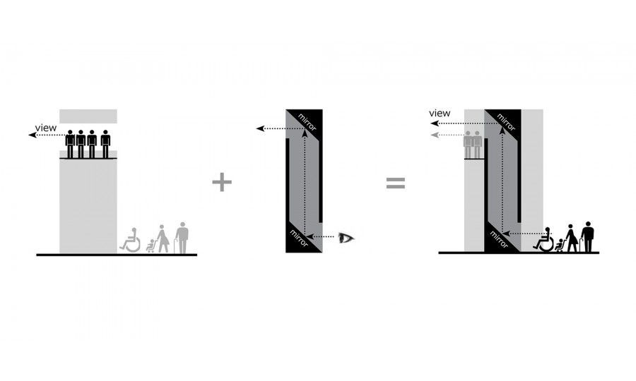 Věž se skládá z tří prefabrikovaných prvků a střechy. Fasáda a schody jsou z modřínu. Detaily a bezpečnostní síť zase z ocele. Cílem bylo vytvořit dřevěnou konstrukci, která by byla zároveň jednoduchá i patřičně kvalitní a která by odrážela přírodní kvality svého okolí a posilovala místní komunitu.