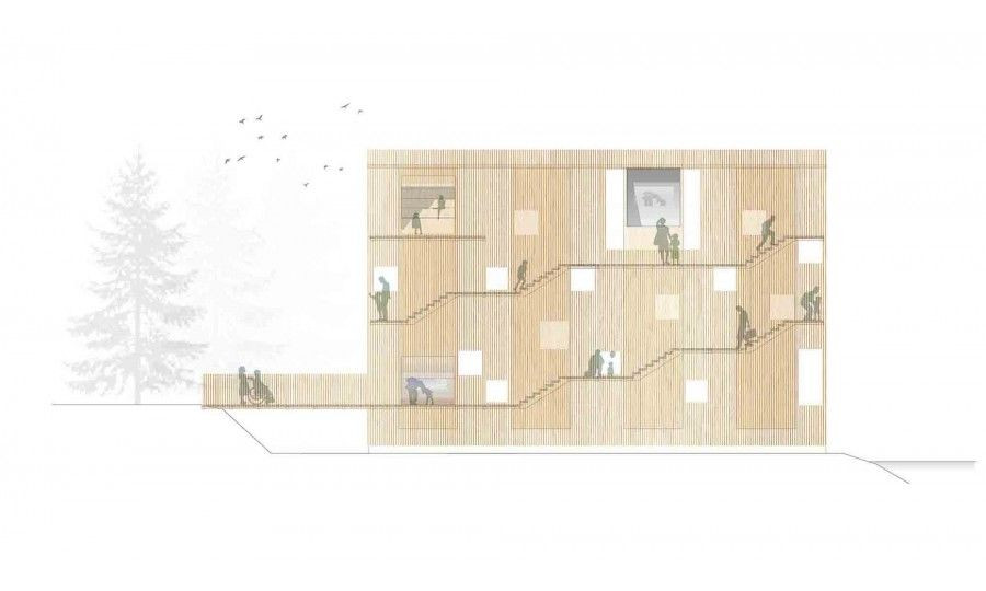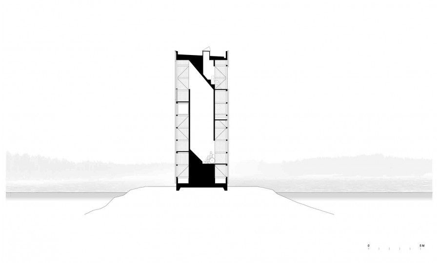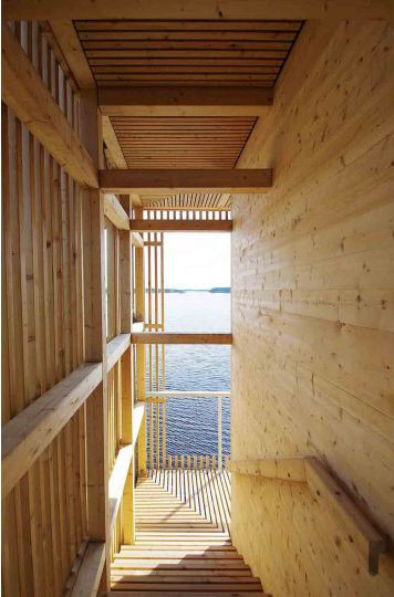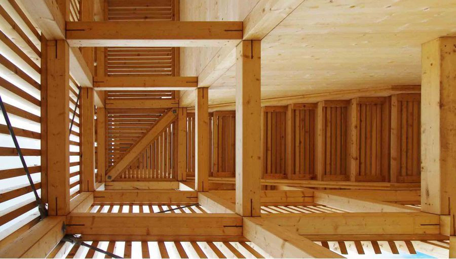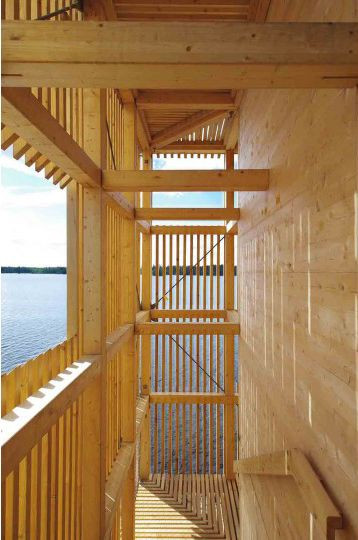 Stavba je vyrobena výhradně ze dřeva. Budova se skládá z vnitřního jádra z křížem vrstveného masivního dřevacross-laminátového dřeva (CLT) a vnějšího dřevěného rámu, který slouží jako nosná konstrukce stavby. Vnitřní jádro z CLT je určeno pro extra velký periskop. Kolem něho se pak vinou schodiště. Z těch se nabízí výhled do okolí z různých výškových úrovní, vždy tam, kde je vnější plášť rafinovaně přerušen.