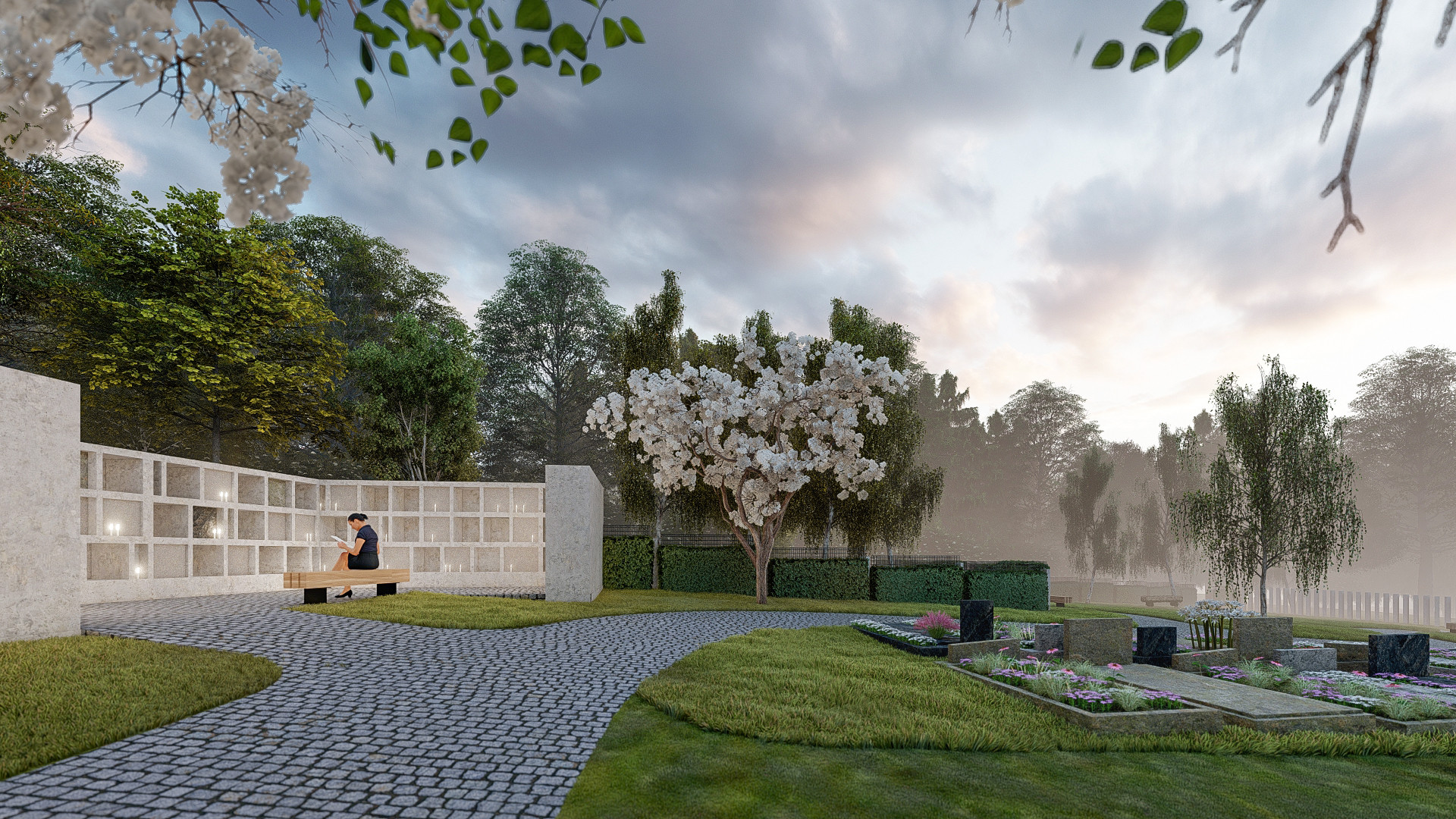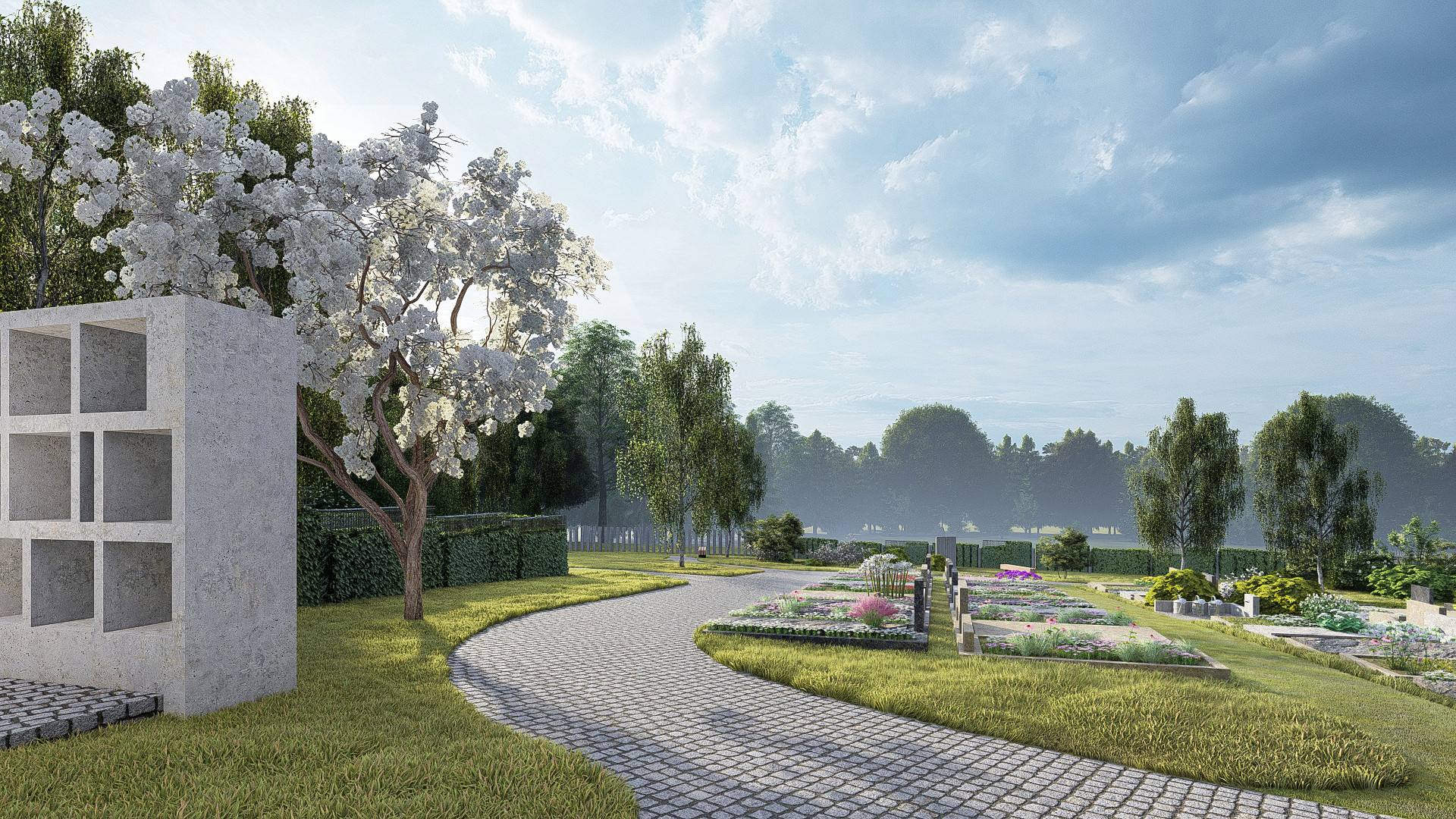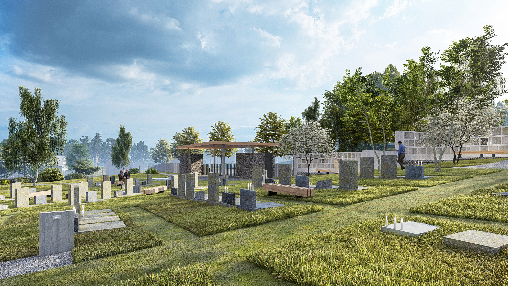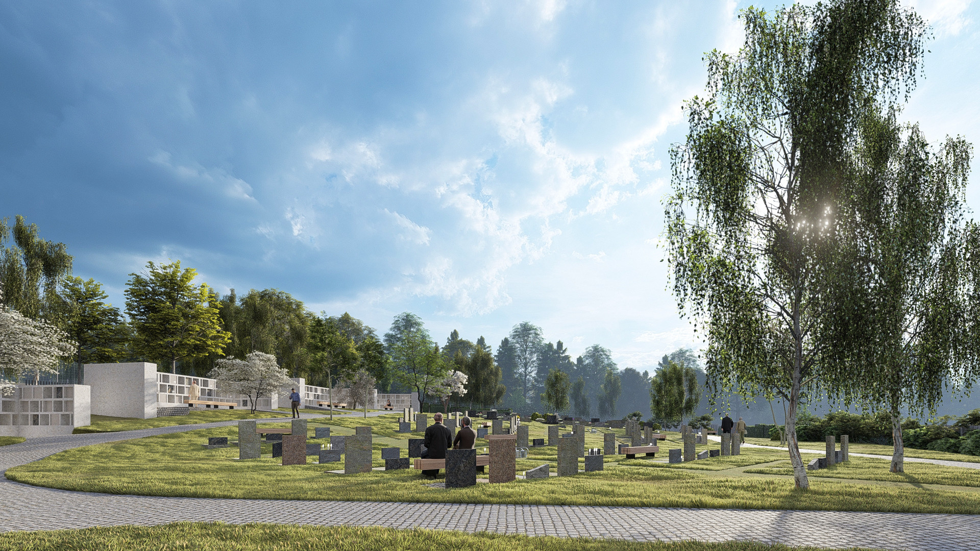 Prostor nového hřbitova je protkán stezkami, které návštěvníky provedou klidnými zálivy příhodnými k rozjímání a relaxaci. Součástí hřbitova jsou poklidná rozptylová loučka i tichá ústraní s kolumbárii s atmosférou připomínající meditativní zahrady nebo klášterní ambity.