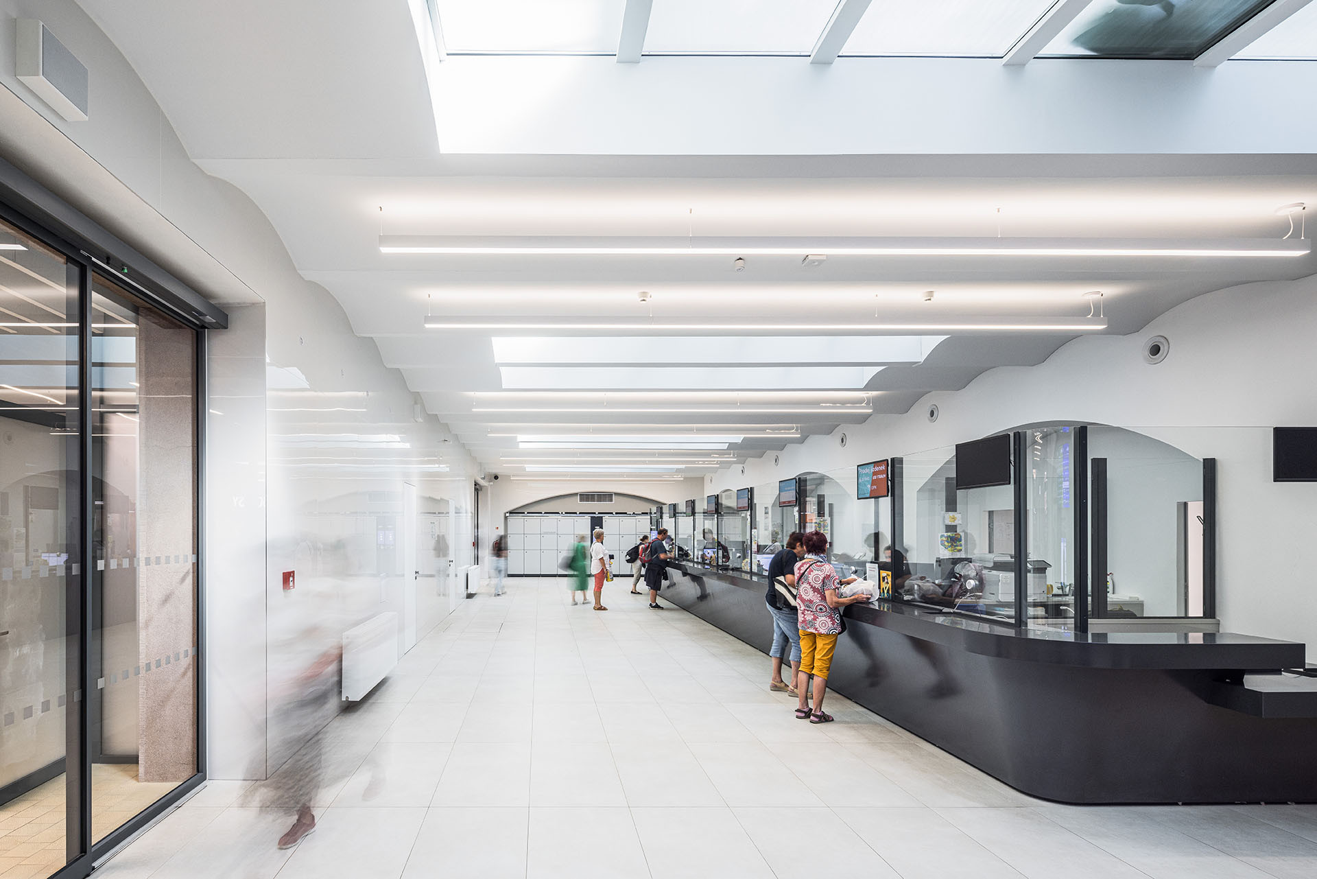 Zásadní úpravou prošla centrální pokladna i informační centrum. Jednotlivé přepážky ústřední pokladny spojil černý pult v kombinaci se světle šedými dlaždicemi Extra s minimalistickým designem. Všechny toalety jsou bezbariérové, nevidomým a sluchově handicapovaným pomáhají nové systémy orientace. Celý prostor je sledován bezpečnostními kamerami. Klíčovou myšlenkou návrhu je propojení nádraží s městem. Novinkou je restaurace se zahrádkou s výhledem na vlaky, která oživí dnes nevyužívaný prostor za nádražím.