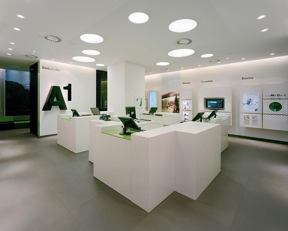Koncept nové prodejny A1 je jednoduchý, jasný a možnosti prezentace zboží jsou neuvěřitelně flexibilní a mnohostranné. Díky využití osvědčených prvků původního designu jako základu je celý projekt udržitelný. Tyto prvky jsou tak ve světle nové značky transformovány. Celkové provedení usiluje o blízkost k zákazníkům, a to navzdory nebo právě díky náročným designérským požadavkům.
