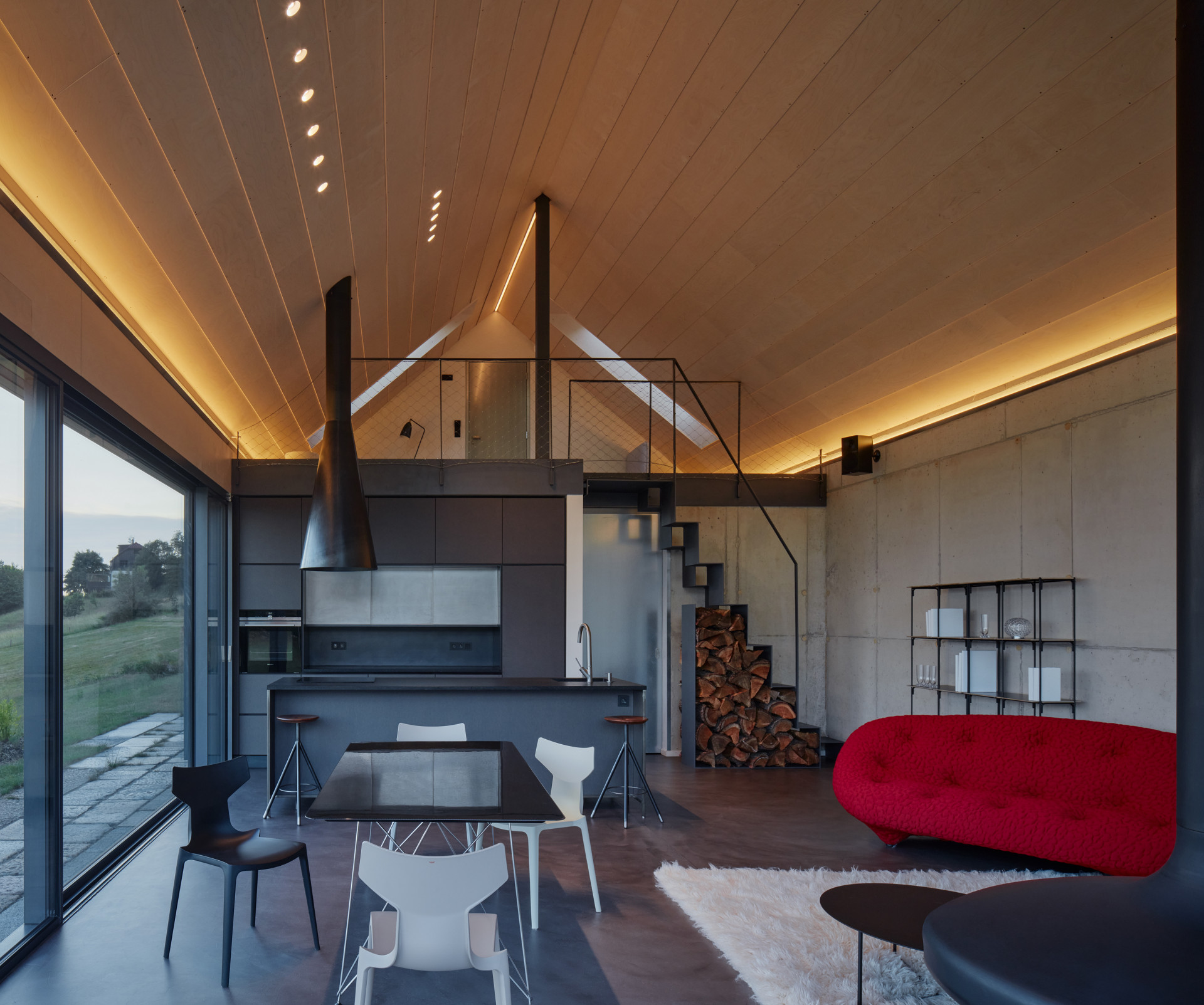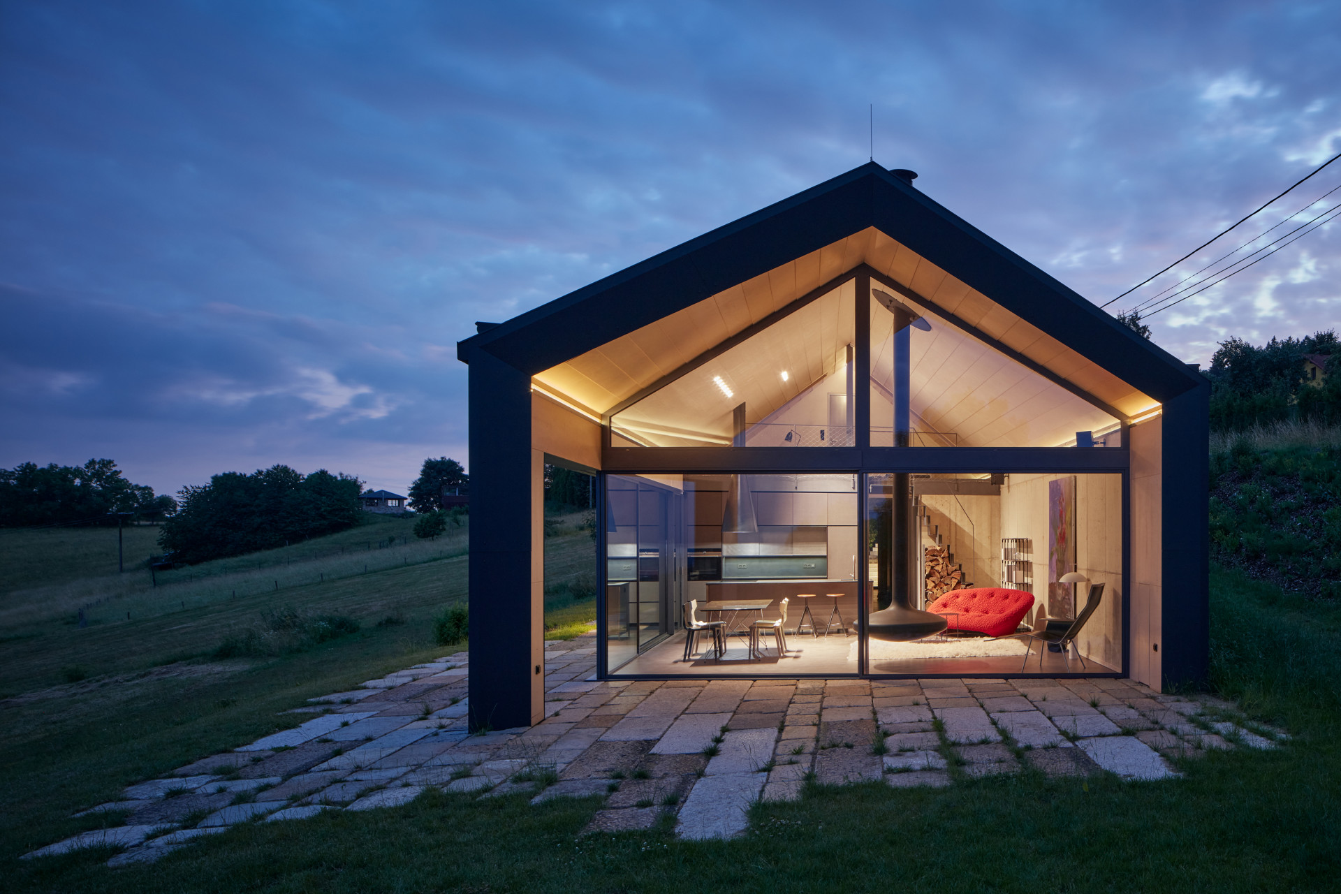Rodinný dům poblíž Ještědu je kontextuální, a přesto velmi netradiční. Stavba, která se otevírá velkými prosklenými plochami výhledu na Český ráj, je realizovaná jako železobetonový monolit a obklopená starými žulovými dlaždicemi. Sázka na kontrast se v realizaci ostatně uplatnila hned několikrát.
