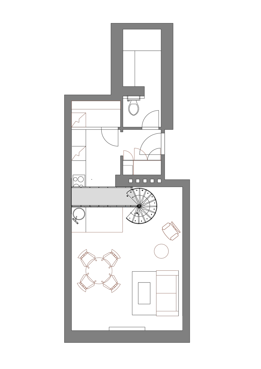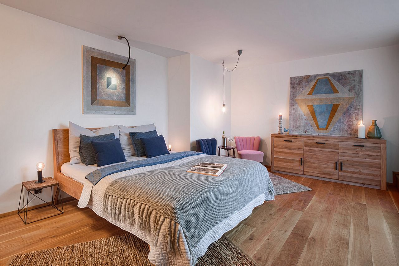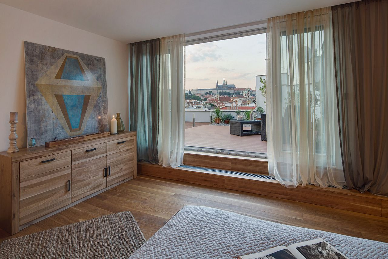 Rekonstrukcí mezonetového bytu s terasou v nejvyšším patře secesního bytového domu v Praze na Smíchově bylo docíleno většího prosvětlení a rozšíření obytné plochy. Interiér, vybavený retro nábytkem, sjednocují pastelové barvy povrchů stěn a obkladů a v symbióze s prostorem působí i početná výtvarná díla.