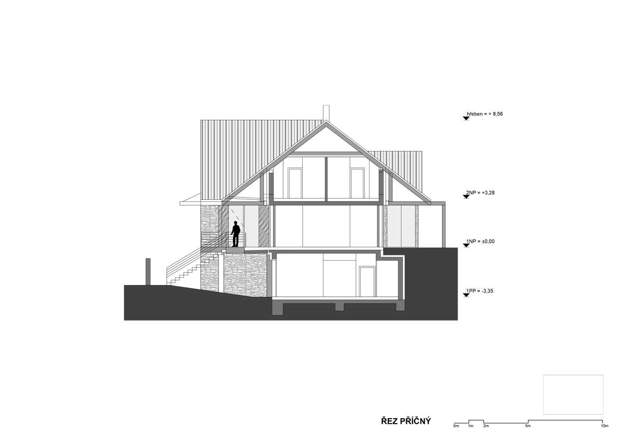 ABM architekti, Vila v Jílovišti, řez příčný – foto