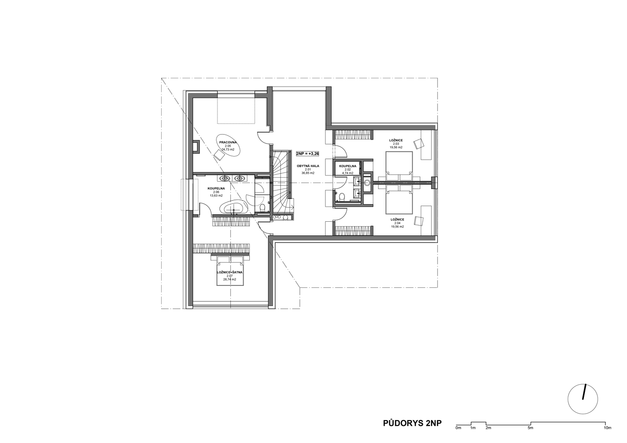ABM architekti, Vila v Jílovišti, půdorys 2. NP – foto