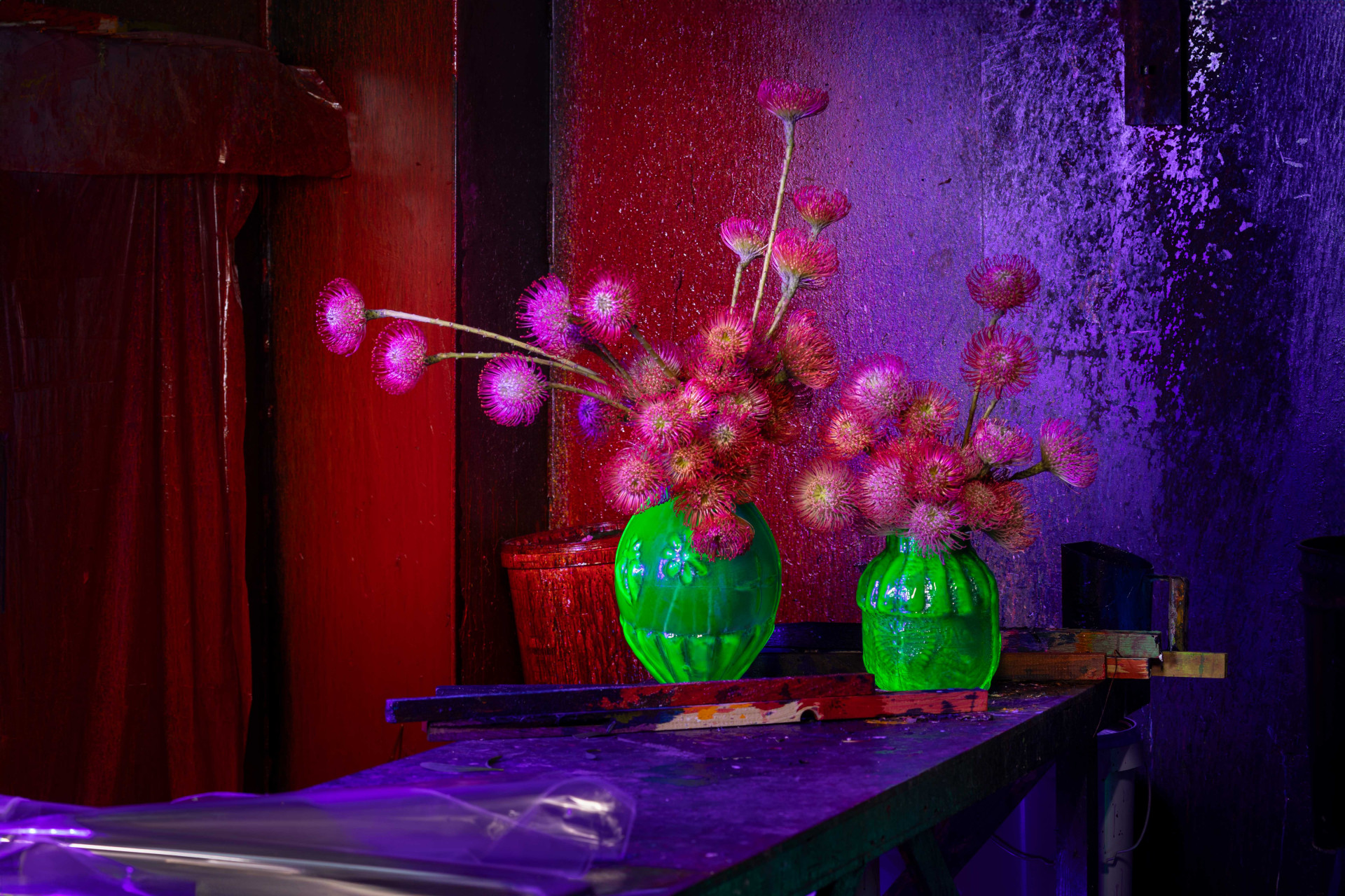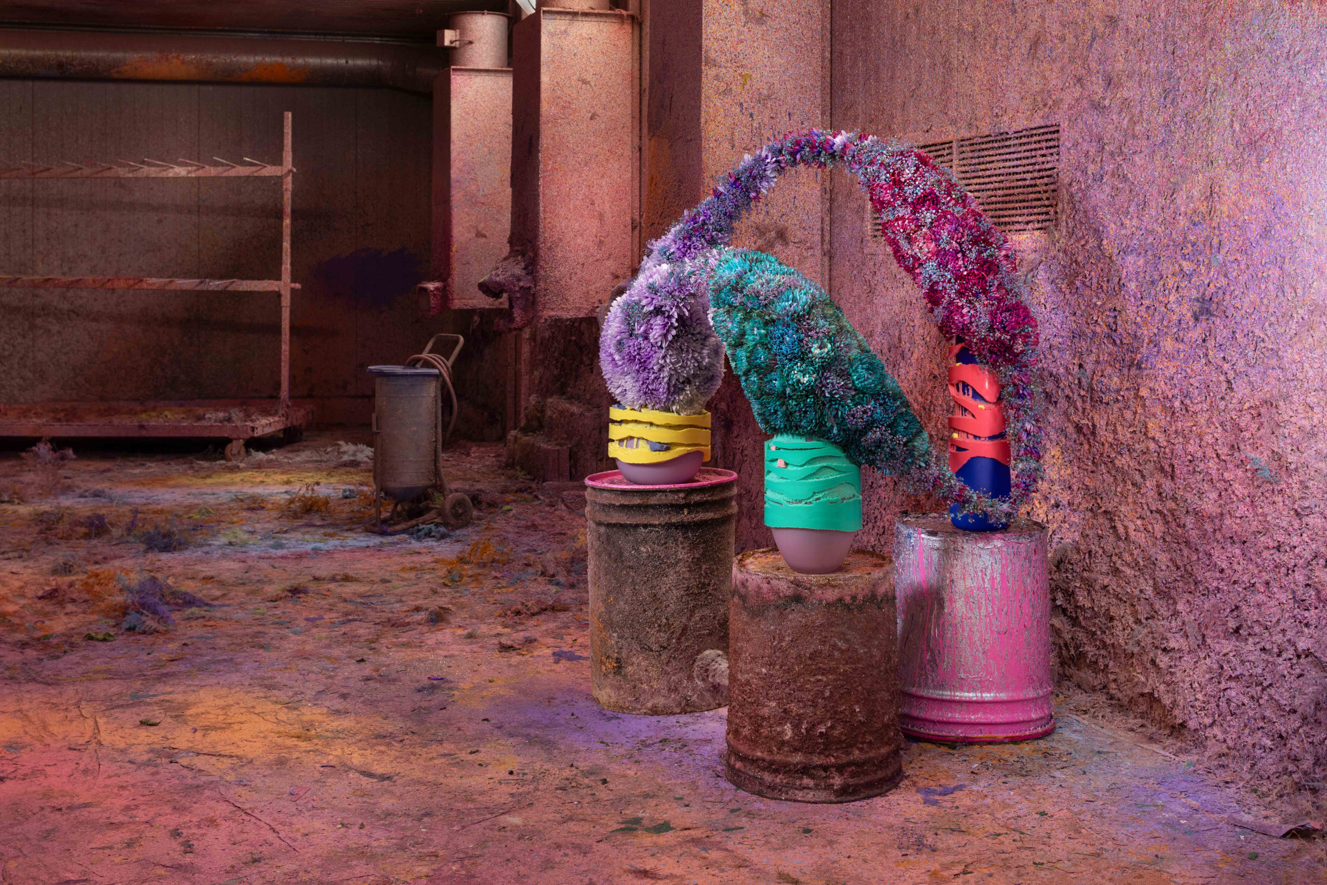 Spojil se s mladými designéry skla a spolu s nimi vytvoří centrální exozici Paralelní květy. Z této kolekce váz a aranžmá jsou také tyto fotografie.