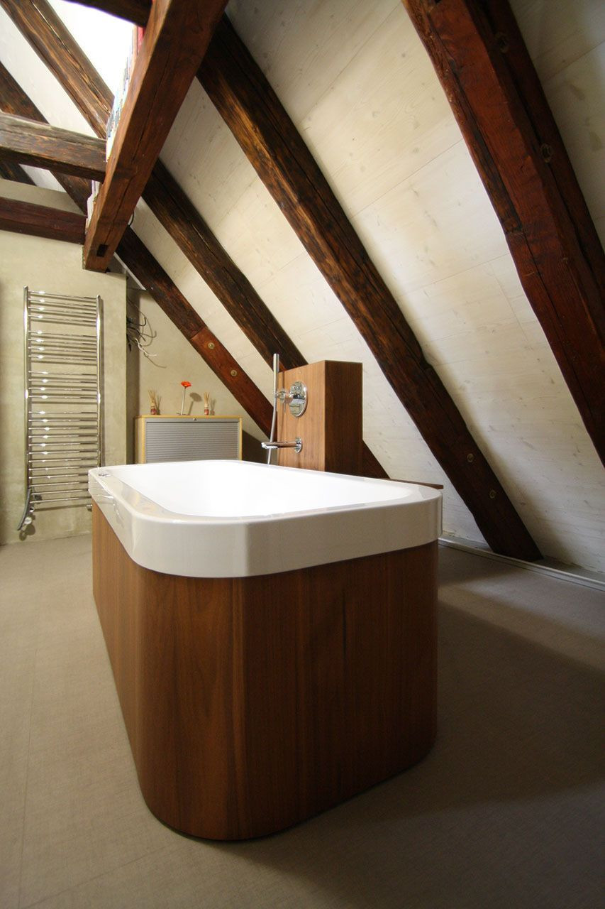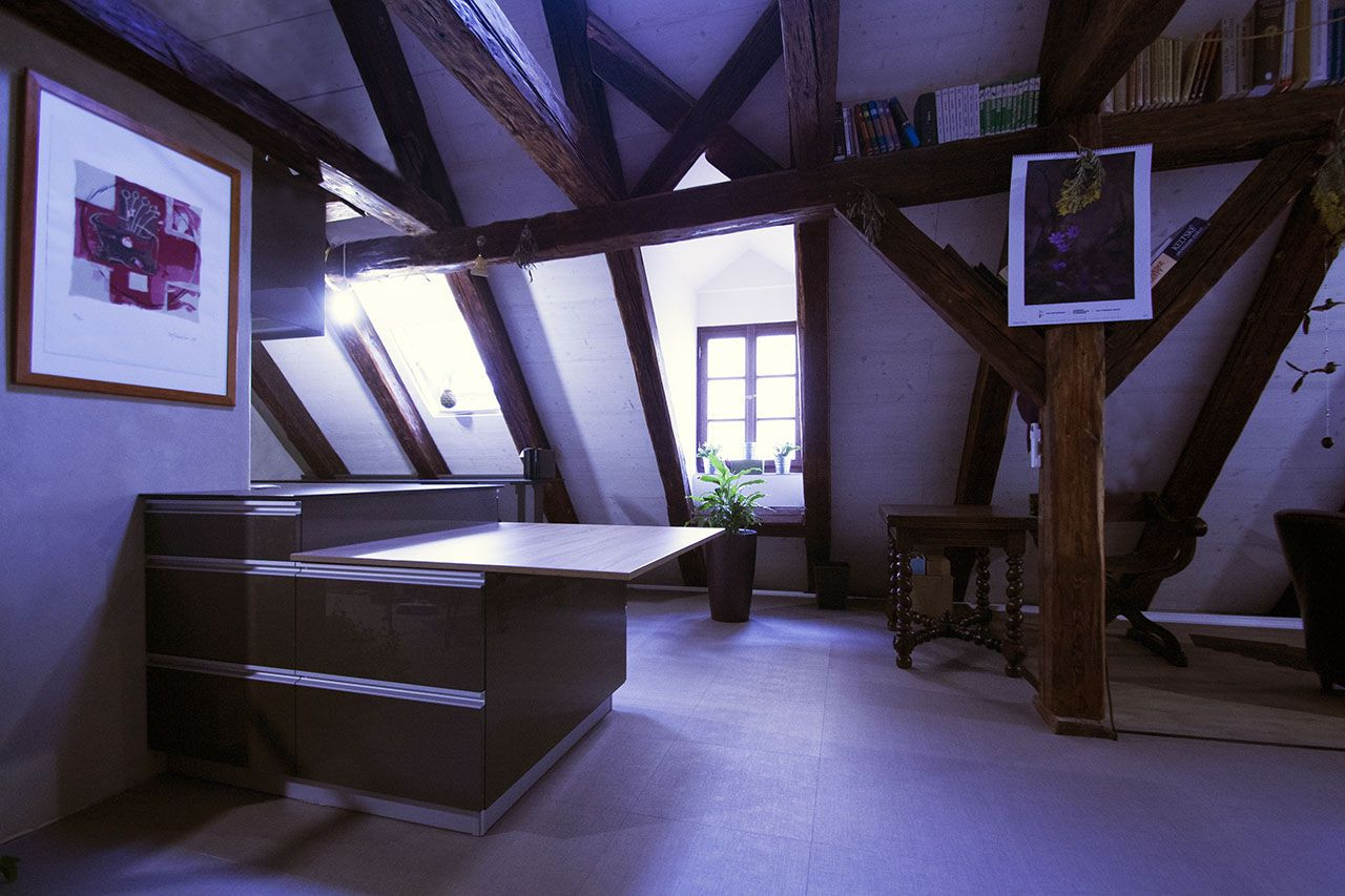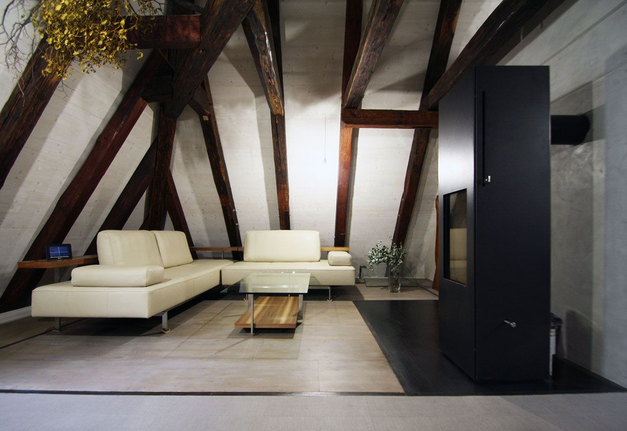 Druhé podkroví tohoto týdne, tentokráte na pražské barokní faře v Konviktské, kde si umělecky založený klient přál vytvořit otevřený byt pro dva, přestože výška krovu a plocha by umožňovala vestavět i patro a více samostatných pokojů. Výsledkem je skutečně velkoryse pojatý prostor.