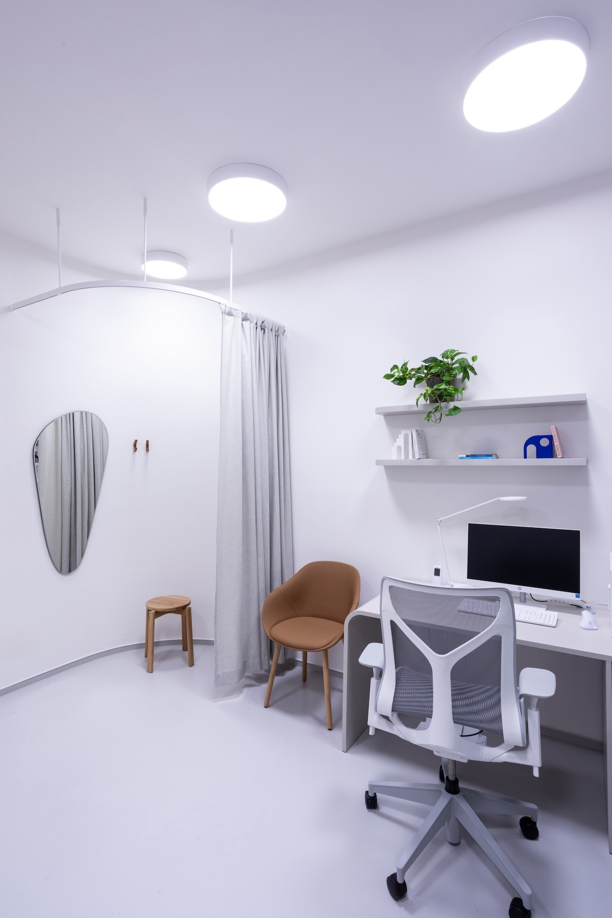 Ačkoliv bylo nutné se v rámci designu pohybovat v určitých mantinelech a velký důraz se kladl především na čistotu, v interiéru nepřevládá chladný minimalismus a nemocniční strohost. Autorce se podařilo vystoupit z řady běžných zdravotnických zařízení a poliklinika Health+ zkrátka dokazuje, že i na návštěvu u lékaře se lze těšit – zvlášť jste-li fanoušek dobré architektury.