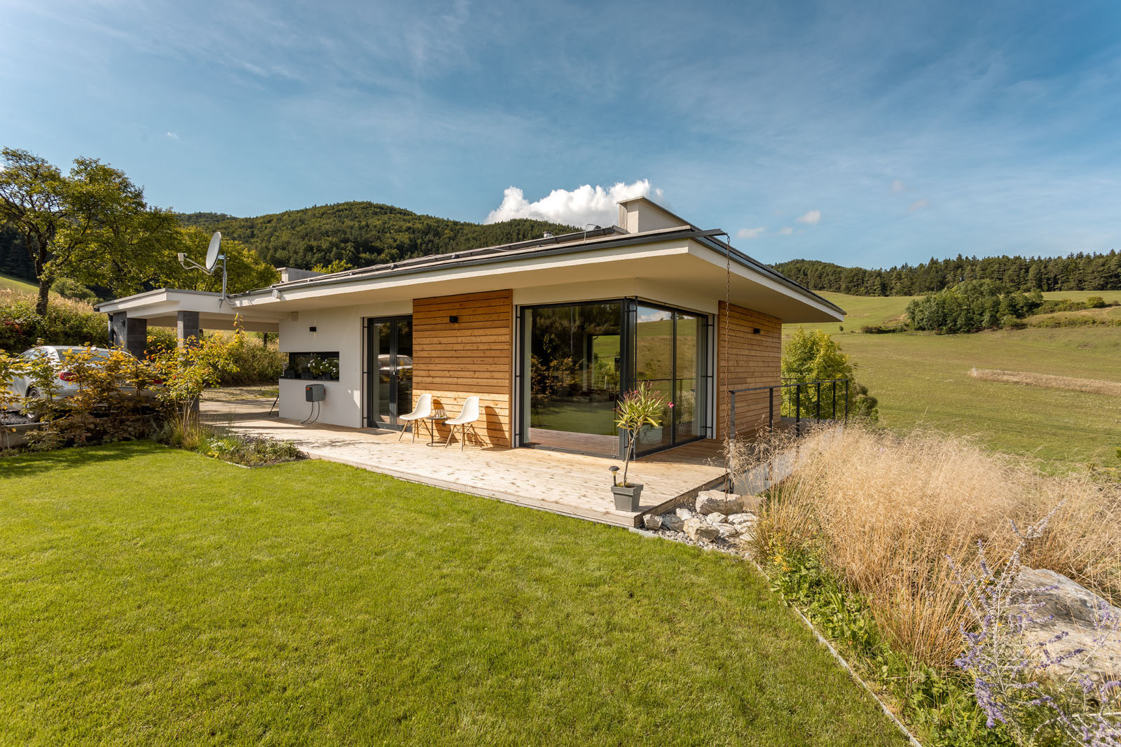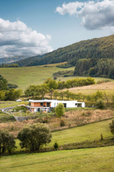 Dům ukrytý mezi horami u Žiliny vyniká propojením architektury s okolím. Celkové vyznění přirozenosti a jednoduchosti podtrhuje i projekt zahrady, která je inspirována původními rostlinami a dřevinami. I když původně chtěl majitel použít dřevo i při výstavbě domu, pro atypicky tvarovaný dům se jako mnohem vhodnější ukázal pórobeton Ytong.