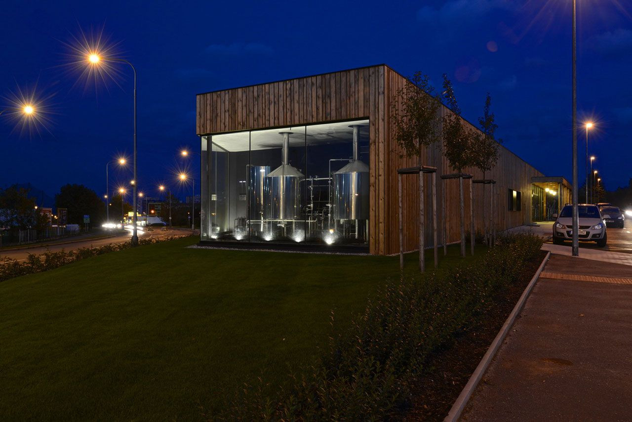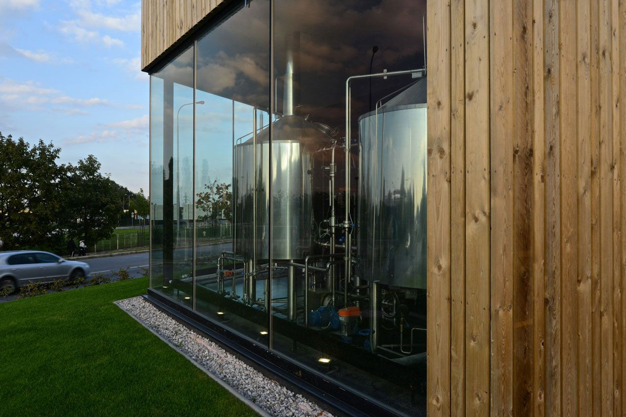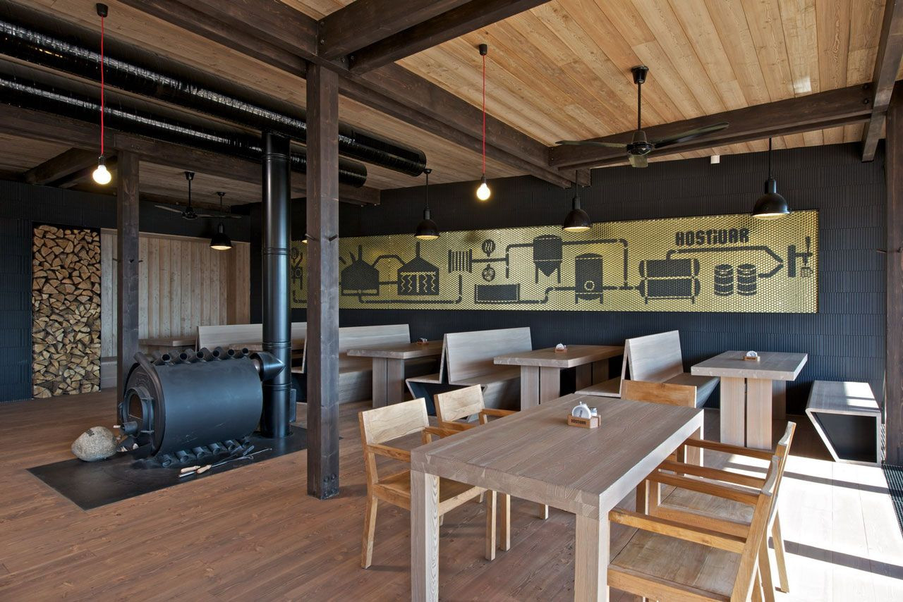Technologické zázemí situované v nejužším cípu podlouhlé budovy Pivovaru Hostivar se otevírá do prostoru ulice na způsob automobilového showroomu, prodává se zde však něco úplně jiného… Na opačné straně lichoběžníkového půdorysu je vstup do restaurační části, kde konzumací piva vrcholí celý proces jeho výroby a distribuce.