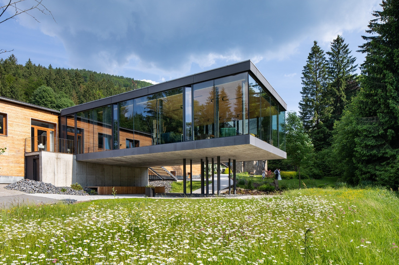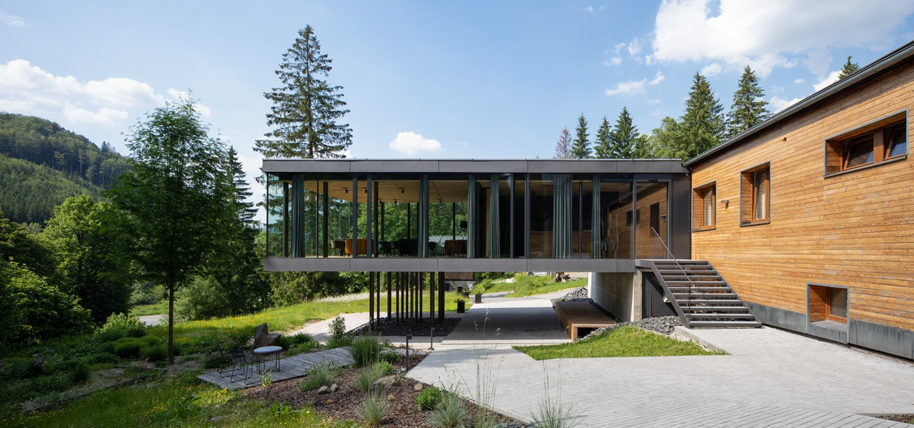 Na krásném a tichém místě v obklopení smíšenými lesy u beskydské obce Čeladná se nachází hotel U Holubů, jehož budovu nedávno obohatila nová přístavba v podobě minimalistického kvádru s krásnými výhledy do okolní přírody.