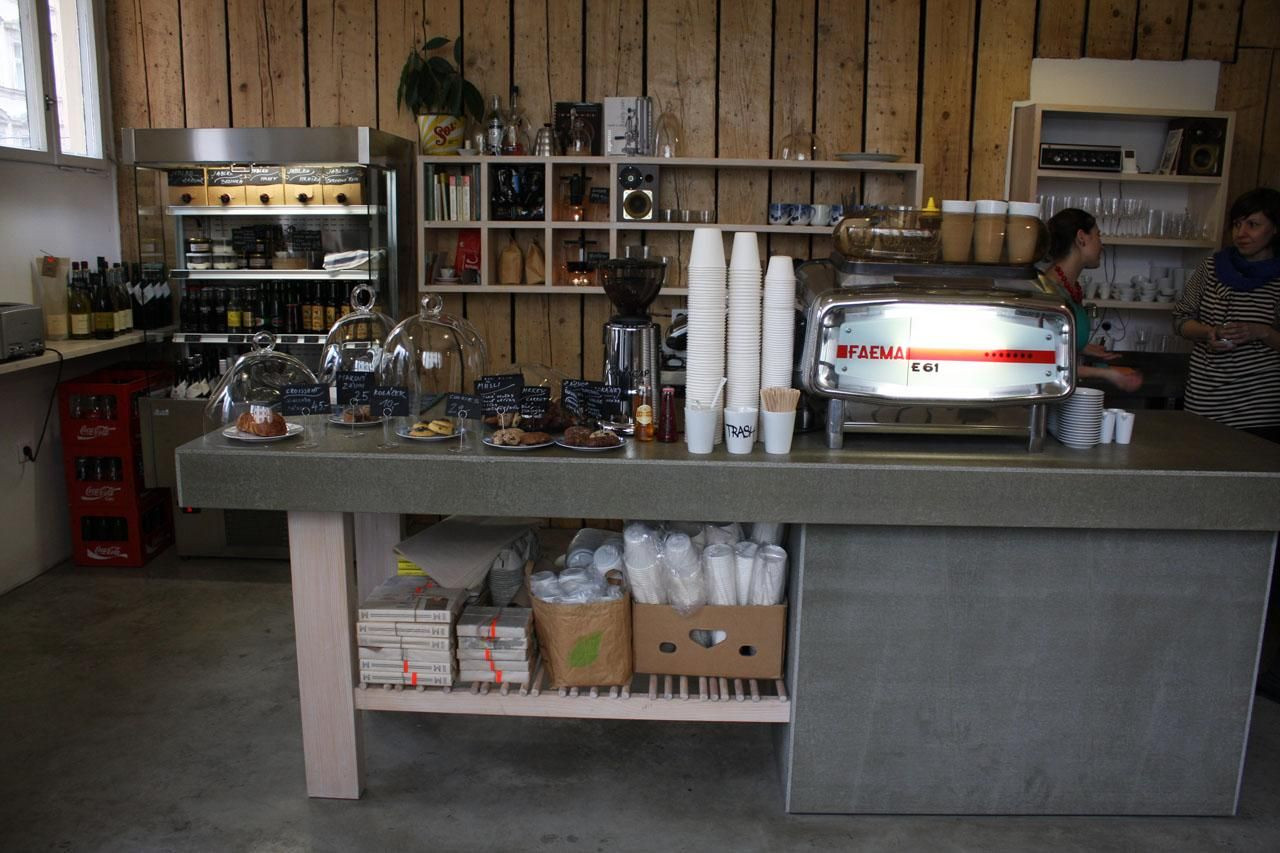 Když jsem sem poprvé vkročila, a při tom jsem věděla, co tady budu dělat, tak se mi věci začaly okamžitě skládat. Všechno, co tady je, vlastně vzniklo kvůli nějaké funkci a volbou materiálu se to doladilo. A prostor sám o sobě nabízel jak divý. Vždycky je to asi poskládáno z nějakých konkrétních inspirací, pro mě to bylo možná hlavně o tom, jak fungují podniky mimo ČR. První místo, kde mě to opravdu chytlo, byla Barcelona. Když jsem se odtud vrátila z prázdnin, chyběl mi v Praze příjemný podnik na rychlé občerstvení v tom pravém slova smyslu. Místo, kde proběhne nějaká rychlá regenerace díky prostředí, dobrému pití, jídlu a chvilce osobního klidu. Dalším městem, kde se už začala formovat myšlenka na to, že si takový podnik musím vytvořit sama, byl Londýn. Tam jsou espresso bary, které běží na stejném principu, který jsem chtěla použít tady. Je ale možné, že do Čech to zatím není úplně vhodné, protože tu ještě nejsou lidé na tenhle formát zvyklí. Hodně jich stále hledá stolečky..