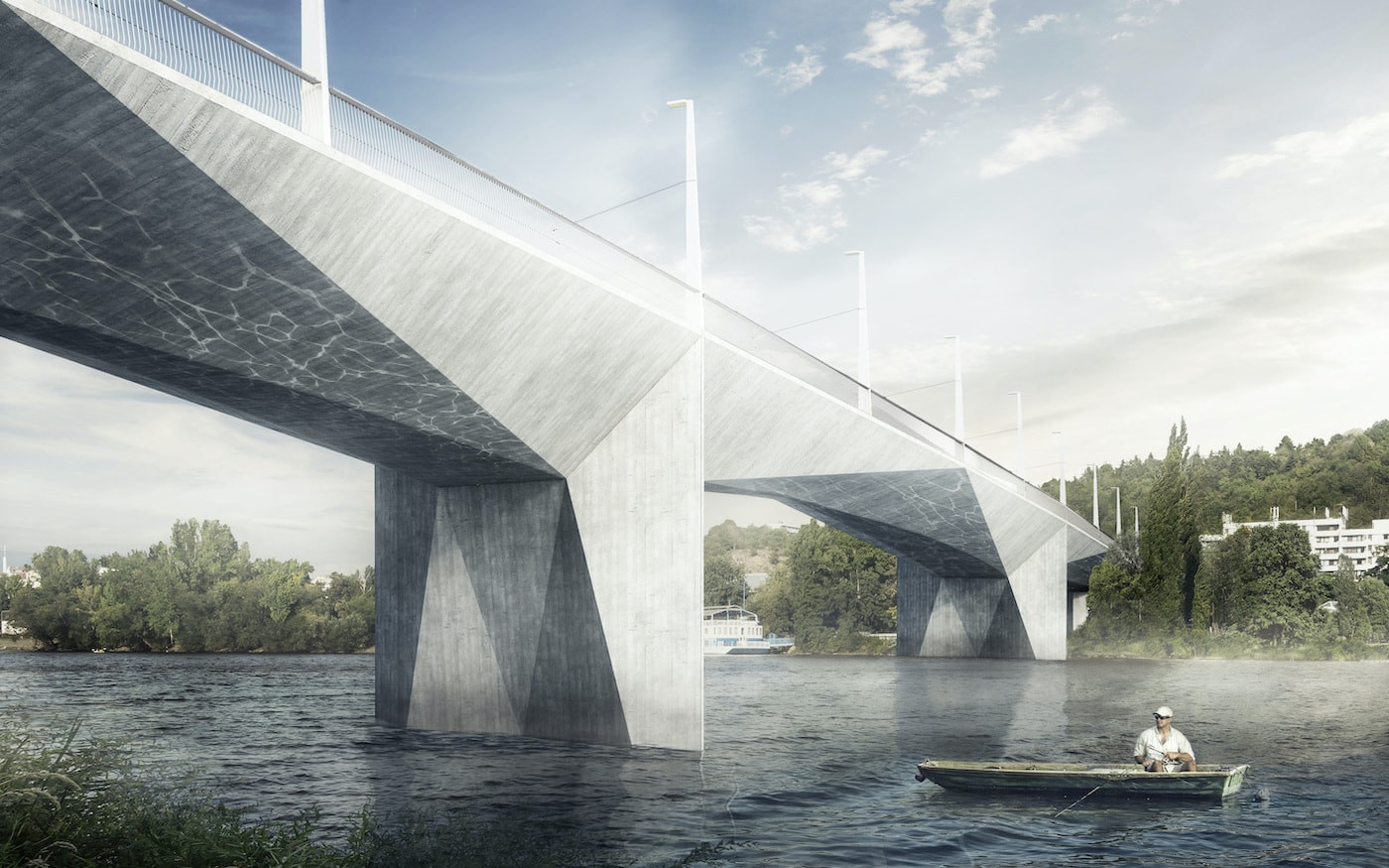 Pozemní část mostu je poškozená a bude nahrazena replikou s "novotvary připomínajícími původní tvarosloví," jak vysvětlil Hlaváček. Část nad řekou prochází rekonstrukcí.