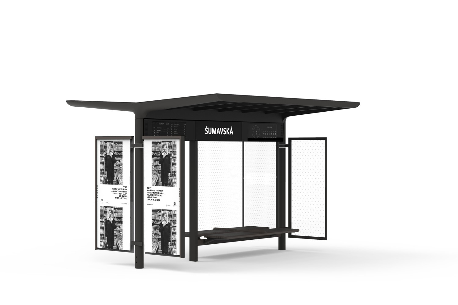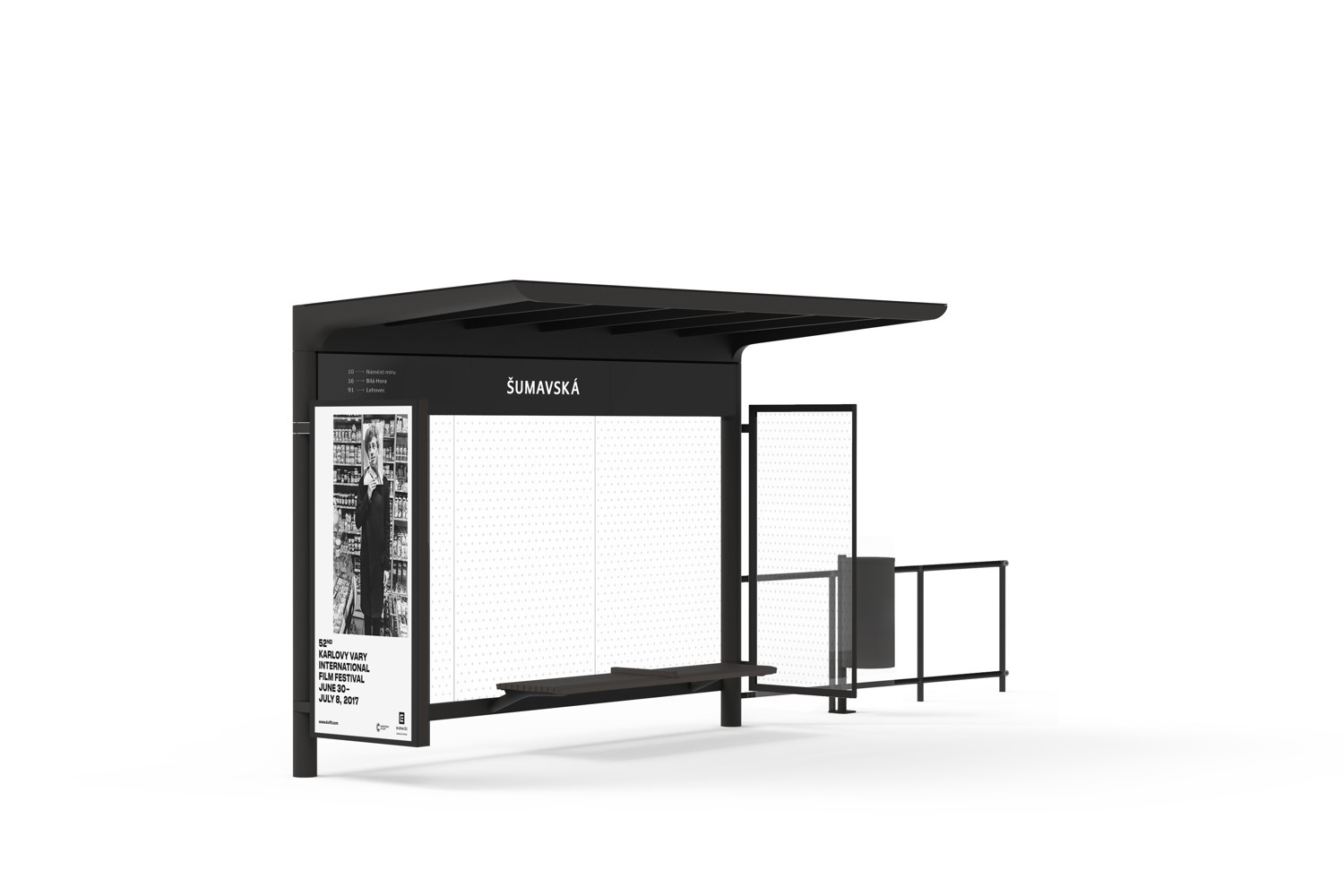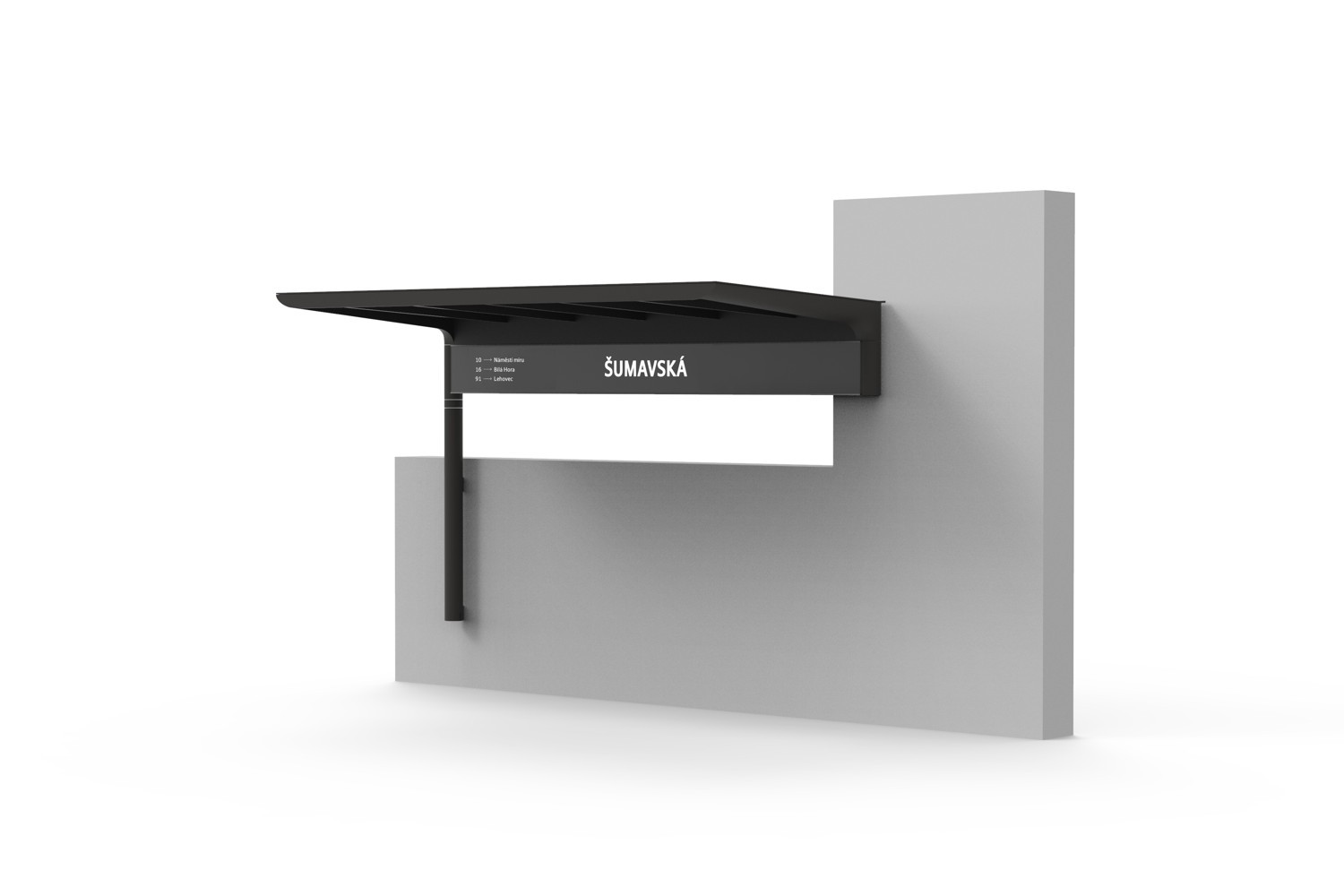 Vítězný návrh porota ocenila zejména za jeho designovou čistotu, variabilitu, komfort užívání a jednoduchost sériové výroby a celkové údržby. Nové přístřešky tak mají nejen estetický přínos ale i výrazně sníží náklady na provoz a údržbu. Vítězný přístřešek je z práškovaného litého hliníku černo šedivé barvy a kromě jedné bočnice určené k reklamním účelům má všechny ostatní stěny průhledné. Uvnitř zastávky je umístěn orientační panel, který informuje o časech a datu, odjezdech, předpovědi počasí a také nese název zastávky.