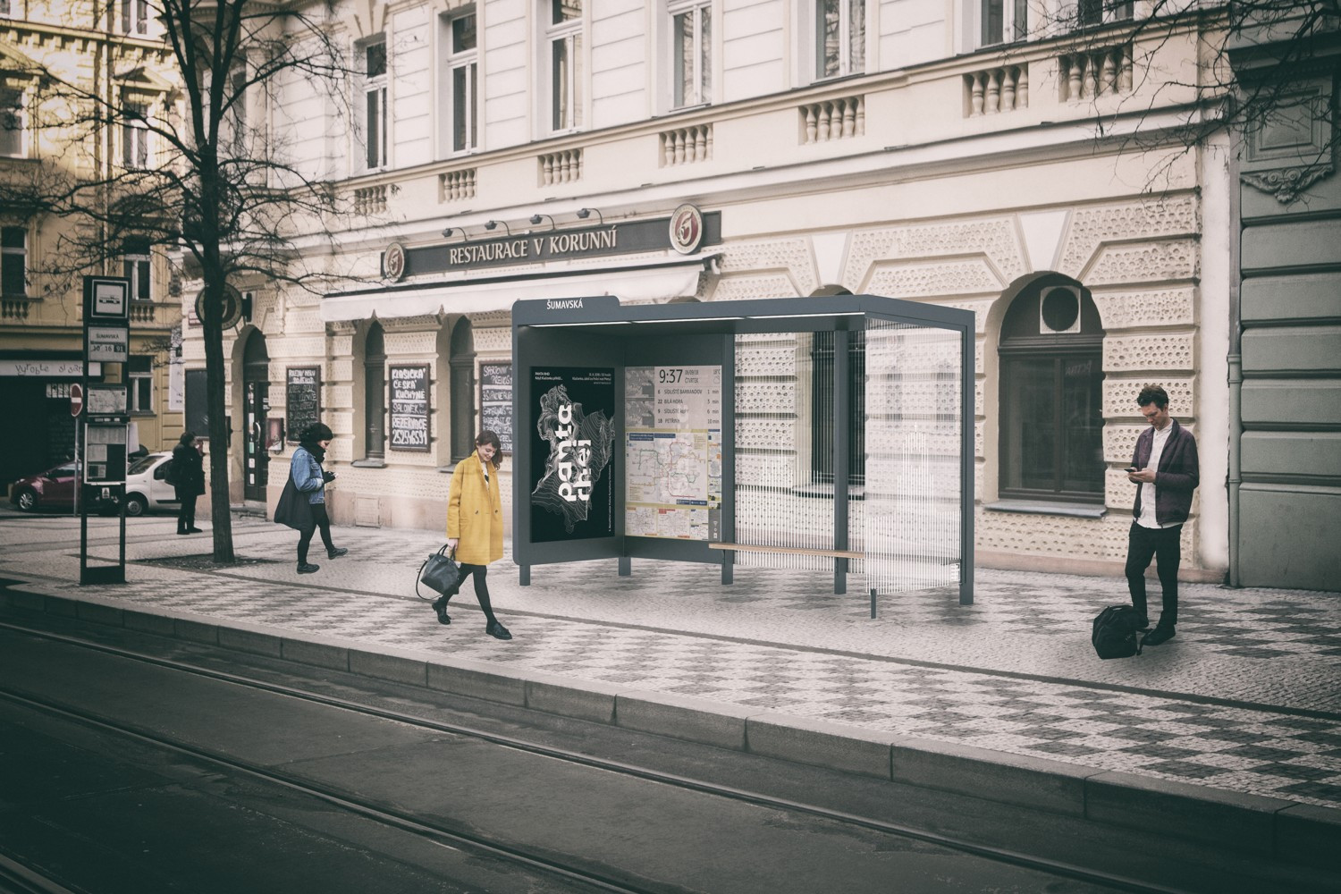 K novému designu městských laviček, odpadkových košů a stojanů na kola se dnes přidává i nový design zastávkového přístřešku a zábradlí. Autorem vítězného návrhu je duo Michala Froňka a Jana Němečka ze studia Olgoj Chorchoj. Výsledky tzv. jednacího řízení s uveřejněním, které vyhlásil Institut plánování a rozvoje hl. m. Prahy (IPR) v polovině listopadu schválila i Rada hl. m. Prahy. První testovací prototyp bude uveden do provozu v říjnu 2019.
