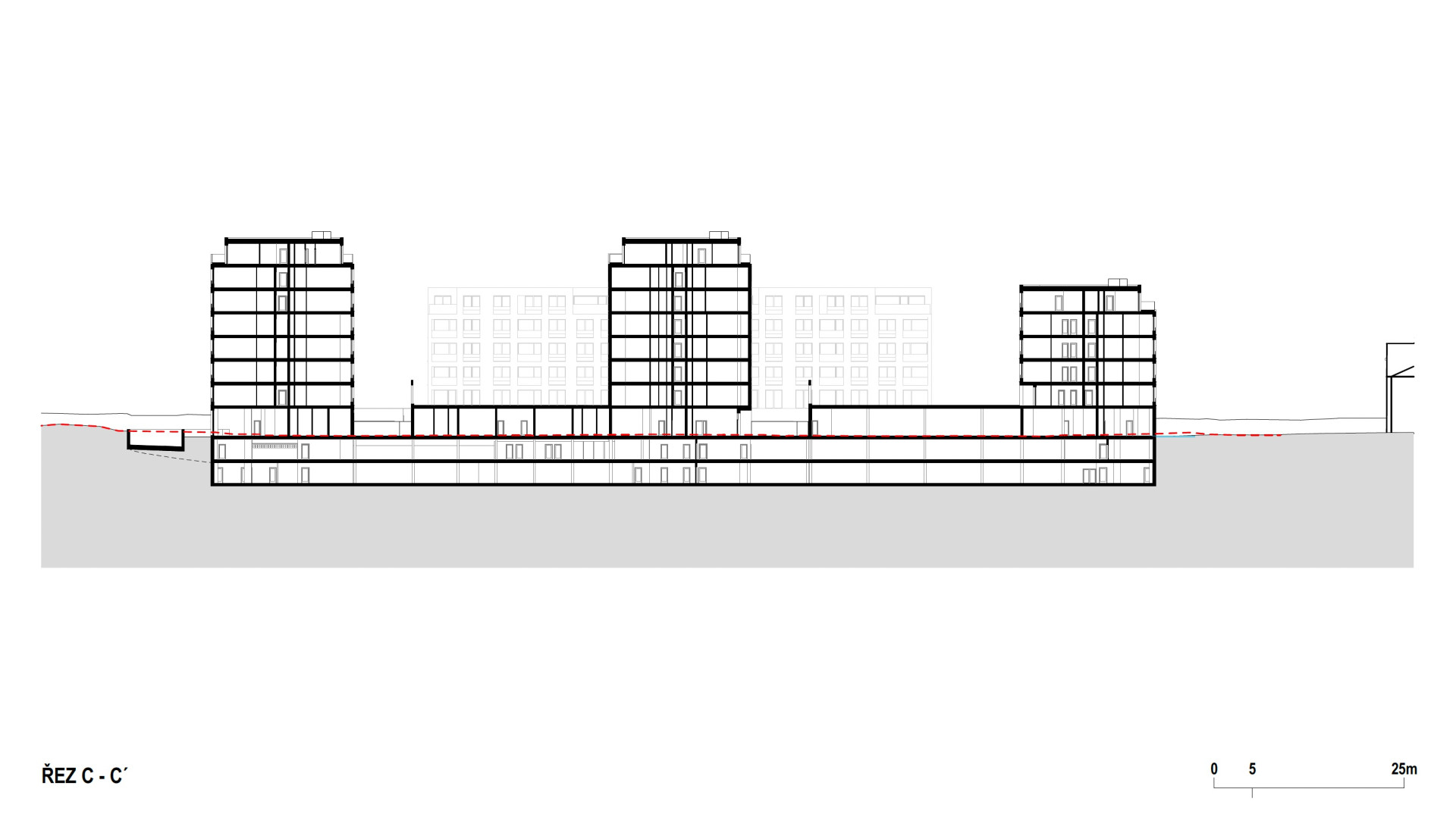 V severní části pozemku se nachází projekt Rezidence Silver Port tvořený čtyřmi bytovými domy usazenými na společné podnoži polozapuštěných podzemních garáží. „Tyto objekty jsou nižší (4+1 NP) a v rámci celého záměru vytváří plynulý přechod k zástavbě v ulici Počernická, kde jsou na druhé straně ulice již postaveny bytové domy o vyšší podlažnosti,“ vysvětlují architekti.