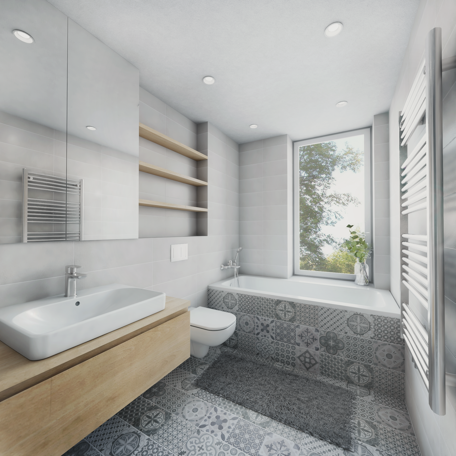 Jako zdroj tepla pro vytápění bude sloužit dvojice tepelných čerpadel systému vzduch/ voda. Byty budou vybaveny podlahovým vytápěním se zónovou regulací a nuceným trvalým větráním v sociálním zařízení a okenními štěrbinami s tlumiči hluku. Odsávání bude probíhat nepřetržitě ze sociálního zařízení pomocí ventilátoru (s nízkými otáčkami).