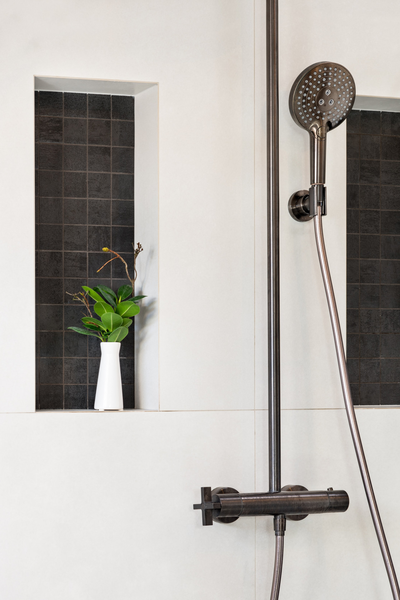 Barevná paleta ladění bytu je zcela minimální. Velké bílé plochy jsou doplněné černými detaily, kterými jsou například i dveřní a okenní kliky MINIMAL od českého výrobce M&T, jež architektka do projektu zvolila v povrchové úpravě titan černý mat. „Když jsem majitelům bytu navrhla tyto kliky, se kterými jsem měla zkušenosti již z dřívějších projektů, okamžitě se pro ně nadchnuli. Získalo je zejména to, že stejný design klik lze použít jak na dveřních křídlech, tak i na posuvném HS portálu, což u výrobců kování rozhodně nebývá zvykem,“ říká Hana Novotná. „Kování MINIMAL nabízí ucelenou kolekci, která zahrnuje prvky pro dveře, okna, HS portály, ale třeba i dveřní zarážky. Jednotlivé prvky jsou tak pohledově sladěné a interiéru dodávají ucelený výraz,“ doplňuje Roman Ulich, hlavní designér společnosti M&T, jediného českého výrobce designového dveřního a okenního kování v České republice.