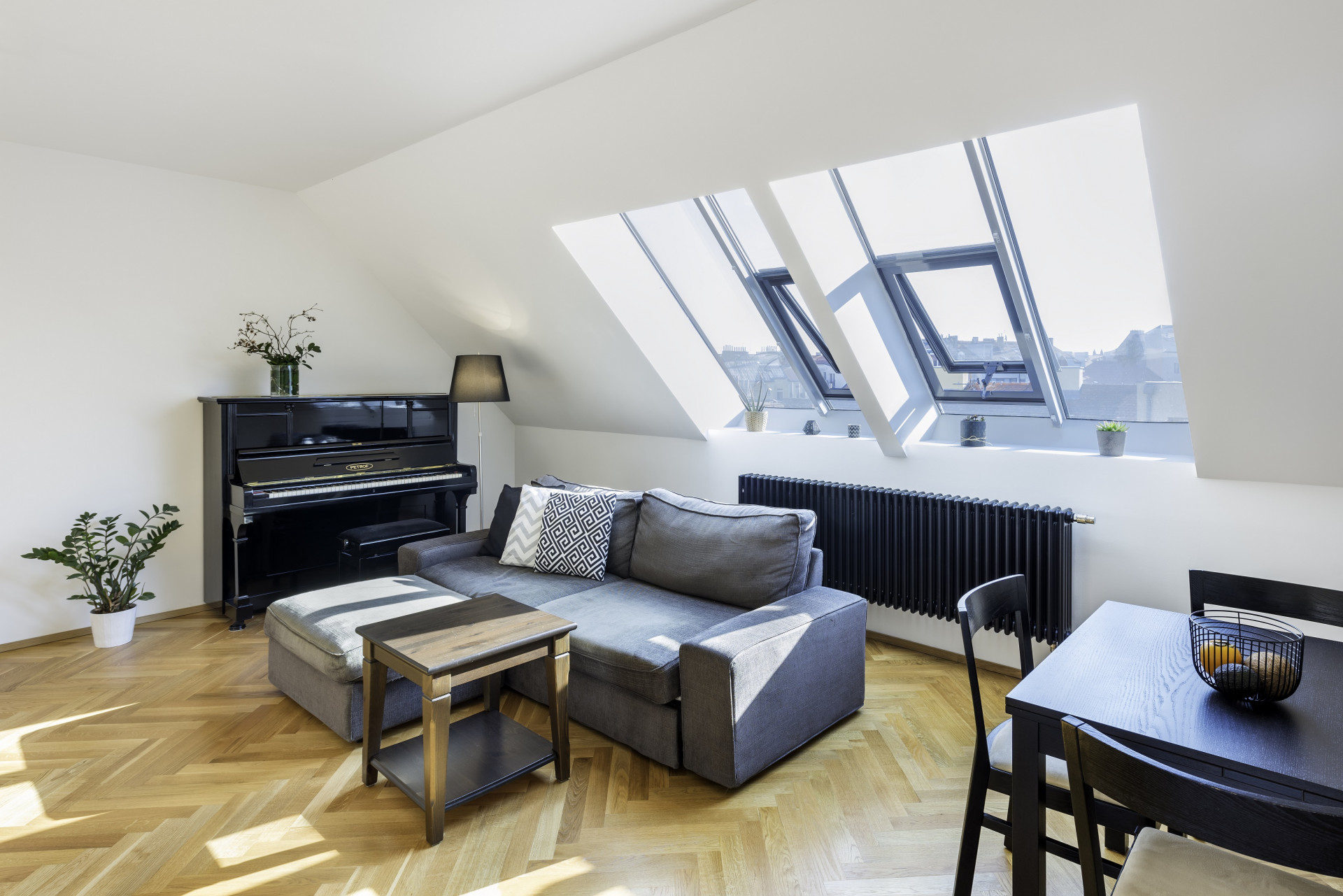 Velkorysý mezonetový byt v šestém patře pražského činžovního domu prošel důslednou rekonstrukcí, která mu vtiskla skandinávskou atmosféru. Současně došlo na podstatné zvětšení terasy, prosklení ložnice i instalaci finské sauny.