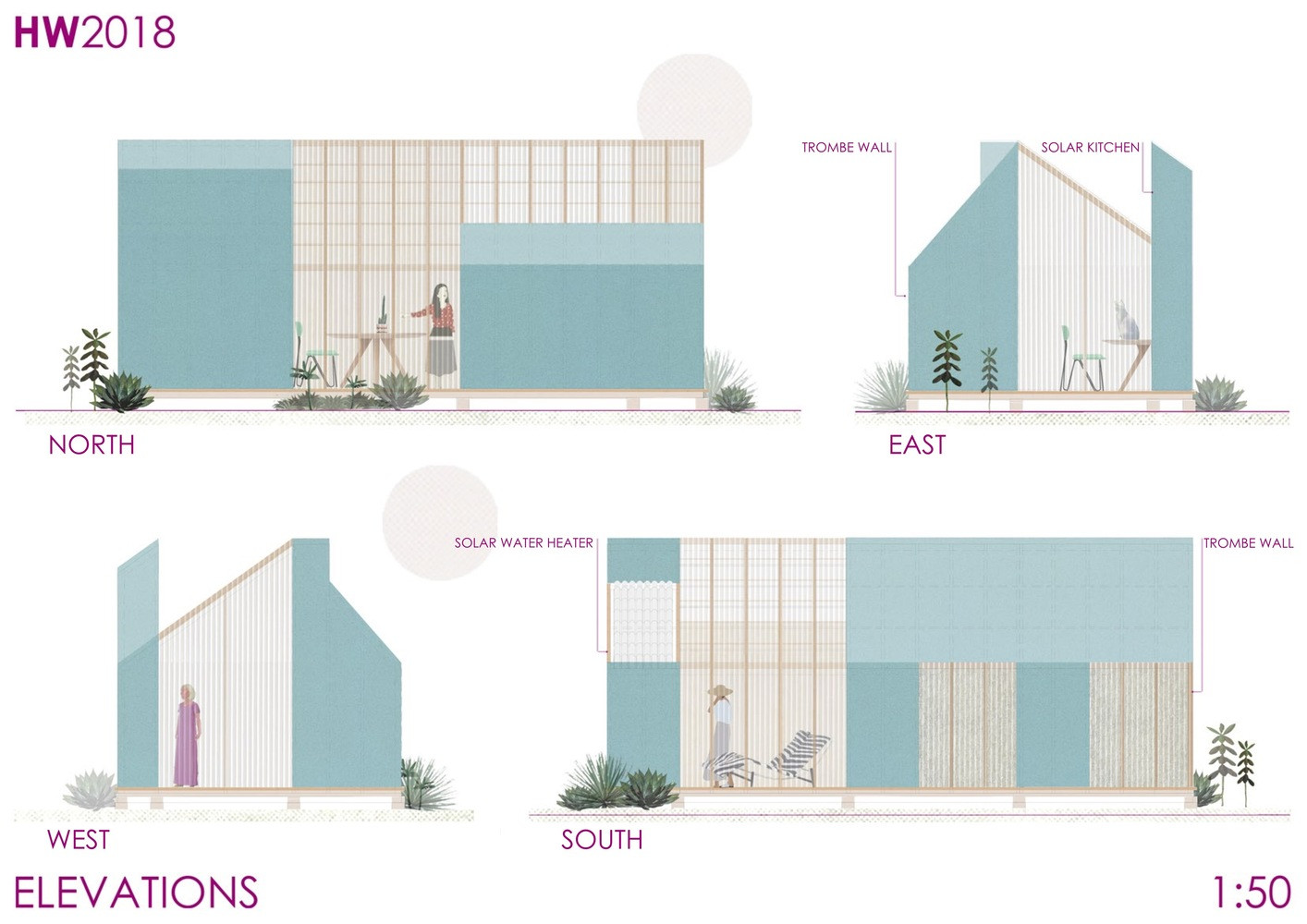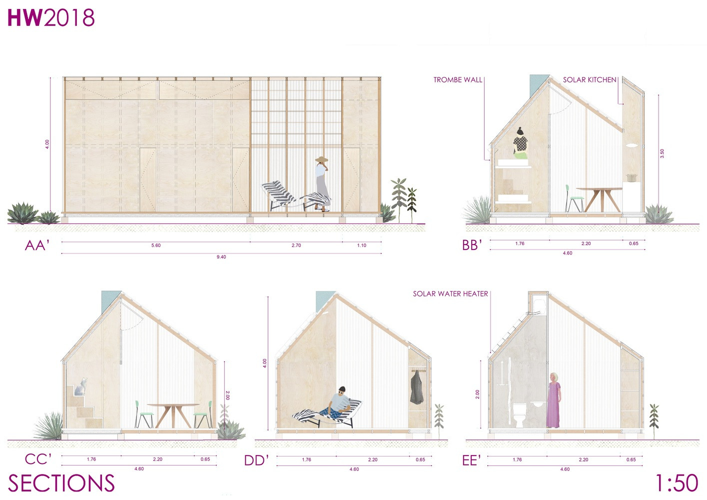 Cabin Moduls“ navrhlo studio IR arquitecture jako pasivní, soběstačný objekt maximálně využívající solární energii. Součástí modulů je tak například Trombeho stěna akumulující v sobě teplo využívané následně k topení, či Fresnelova čočka sbírající energii ze slunečních paprsků pro potřeby kuchyňského boxu.