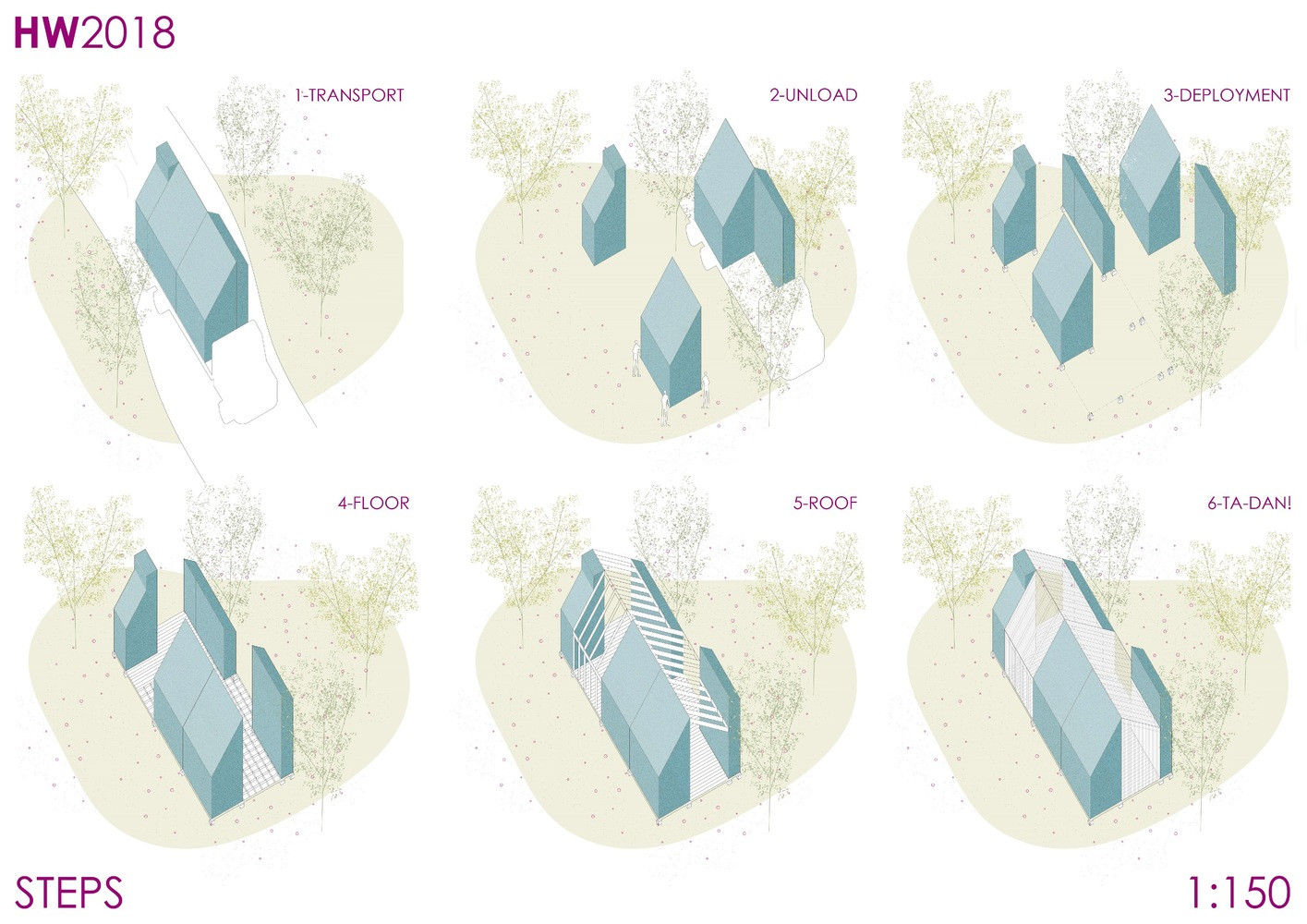 Bezmála 150 studentů z třiceti zemí se v minulém roce sjelo na jeden červencový týden do maďarského města Csóromfölde, aby se zúčastnilo festivalu a letní architektonické školy Hello Wood 2018. Téma devátého ročníku tohoto mezinárodního festivalu, které tentokrát neslo název „Cabin Fever“, slibovalo studentům možnost podílet se na návrhu a realizaci celkem sedmi originálních dřevěných kabin pod vedením výrazných architektonických ateliérů z různých koutů světa. Vedle českých H3T architektů či italského ateliéru ZaraCola tak studenti mohli spolupracovat také na návrhu argentinského studia iR arquitectura, výstižně pojmenovaného „Cabin Moduls“.