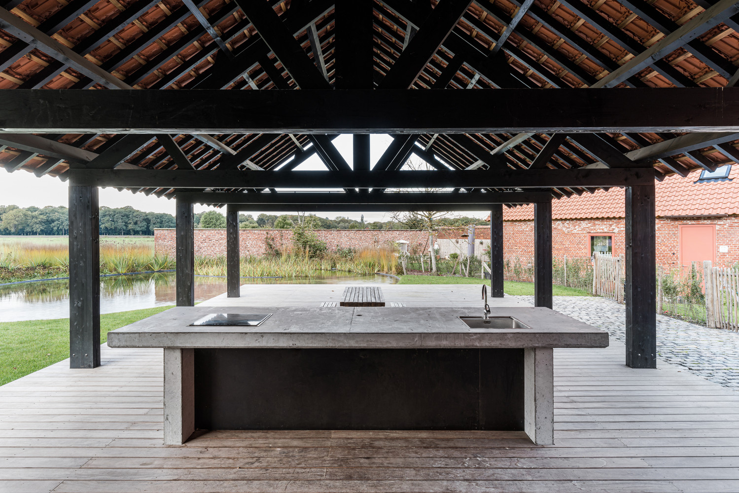Architekti navazovali na historický i přírodní kontext místa. Budovy mají po vzoru původních stájí typické sedlové střechy – ty však prořezávají střešní okna přinášející do interiérů dostatek denního světla. Fasády pak tvoří obklady z cihel a tmavého dřeva.