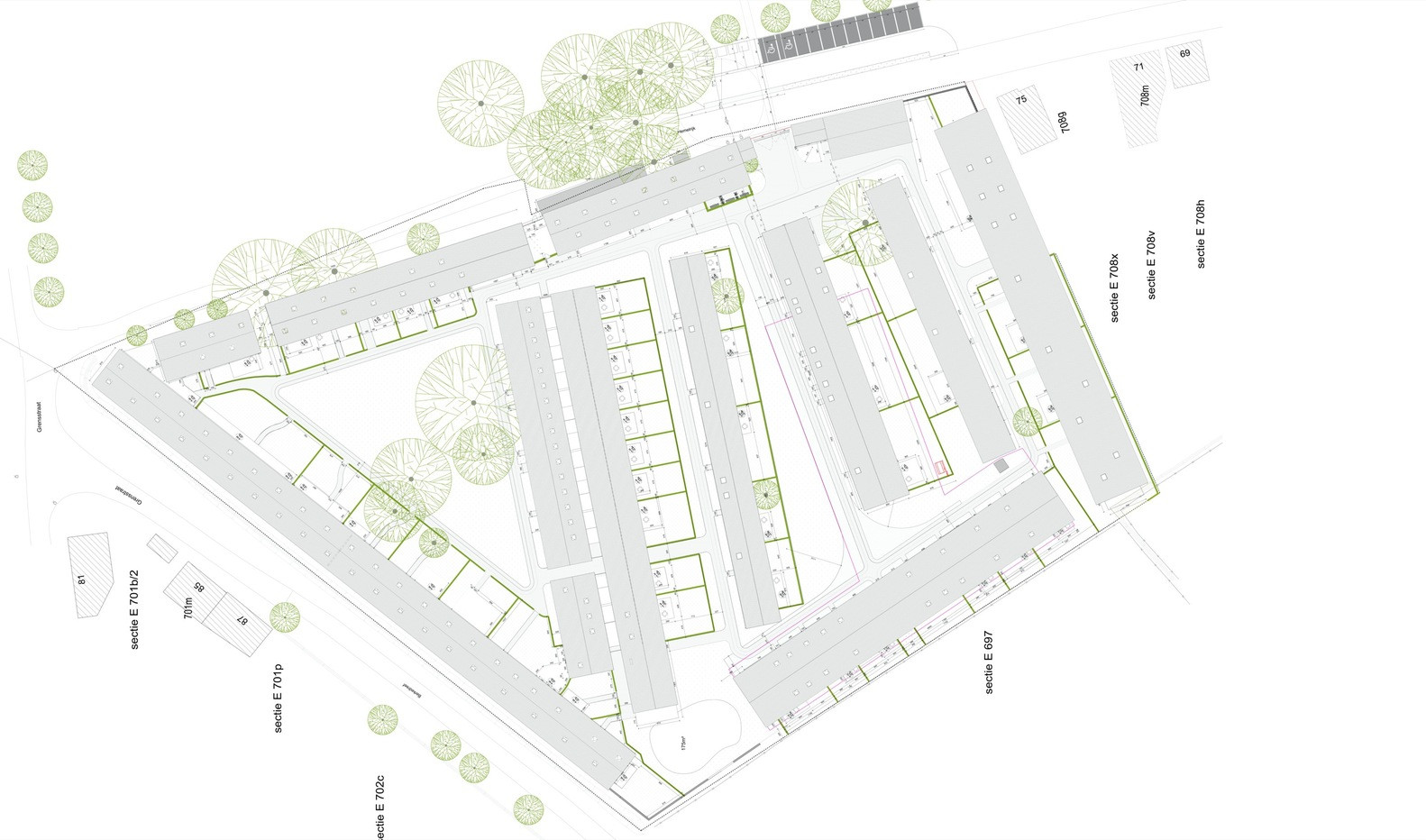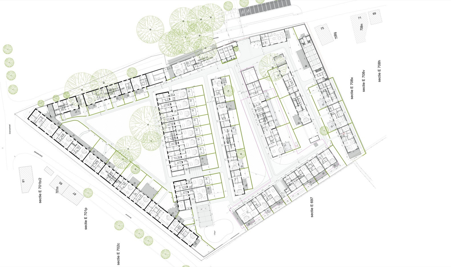 Celkem 13 budov poskytuje dostatek místa pro 44 bytů, společenské prostory a služby. Bydlení je možné v bytech s až 4 pokoji, v nabídce však najdeme taky vícegenerační domy. Aby celý soubor držel z urbanistického hlediska pohromadě, propojují jednotlivé budovy dlážděné cesty, přičemž ke každému domu přísluší vlastní zahrada.